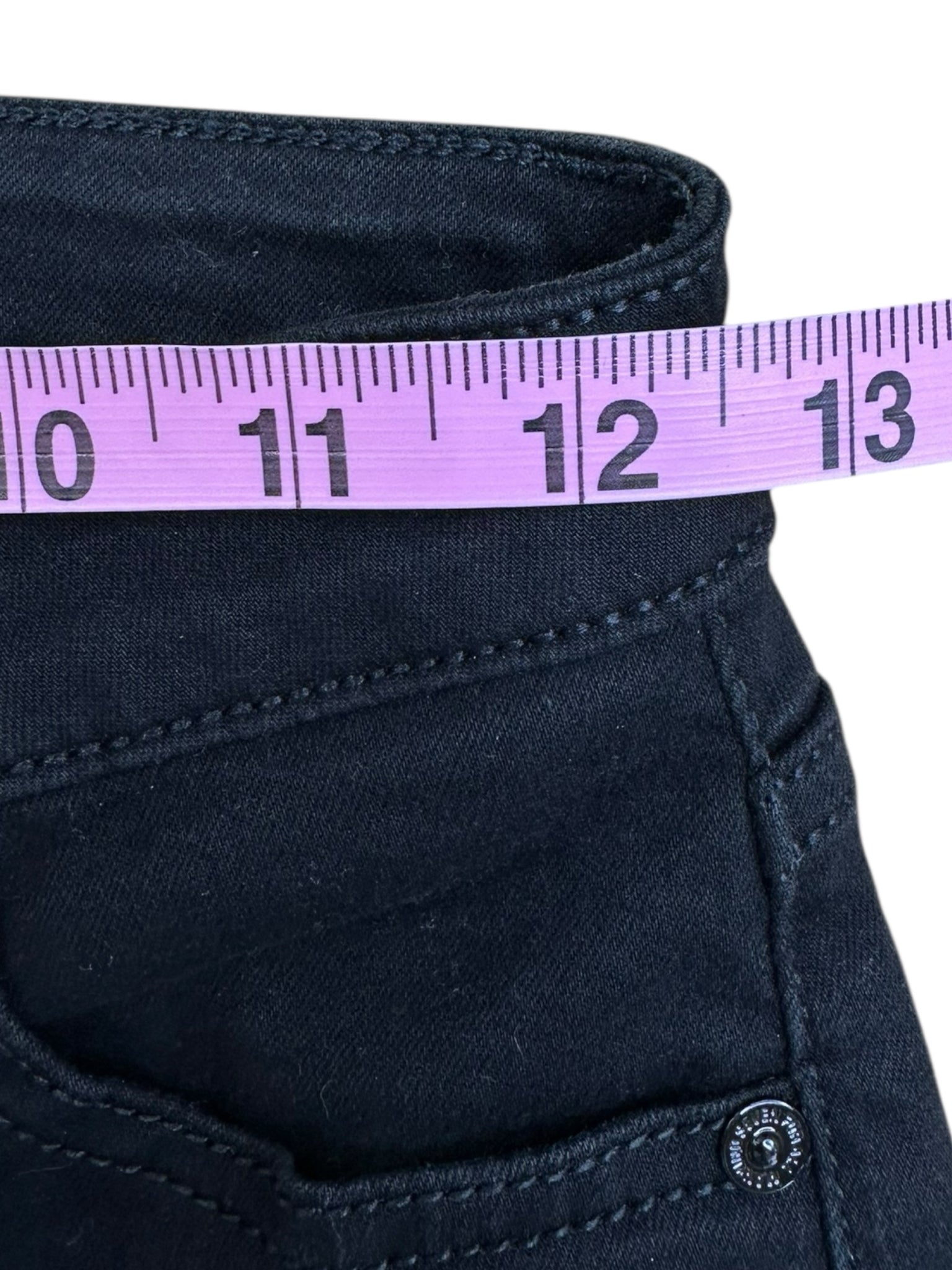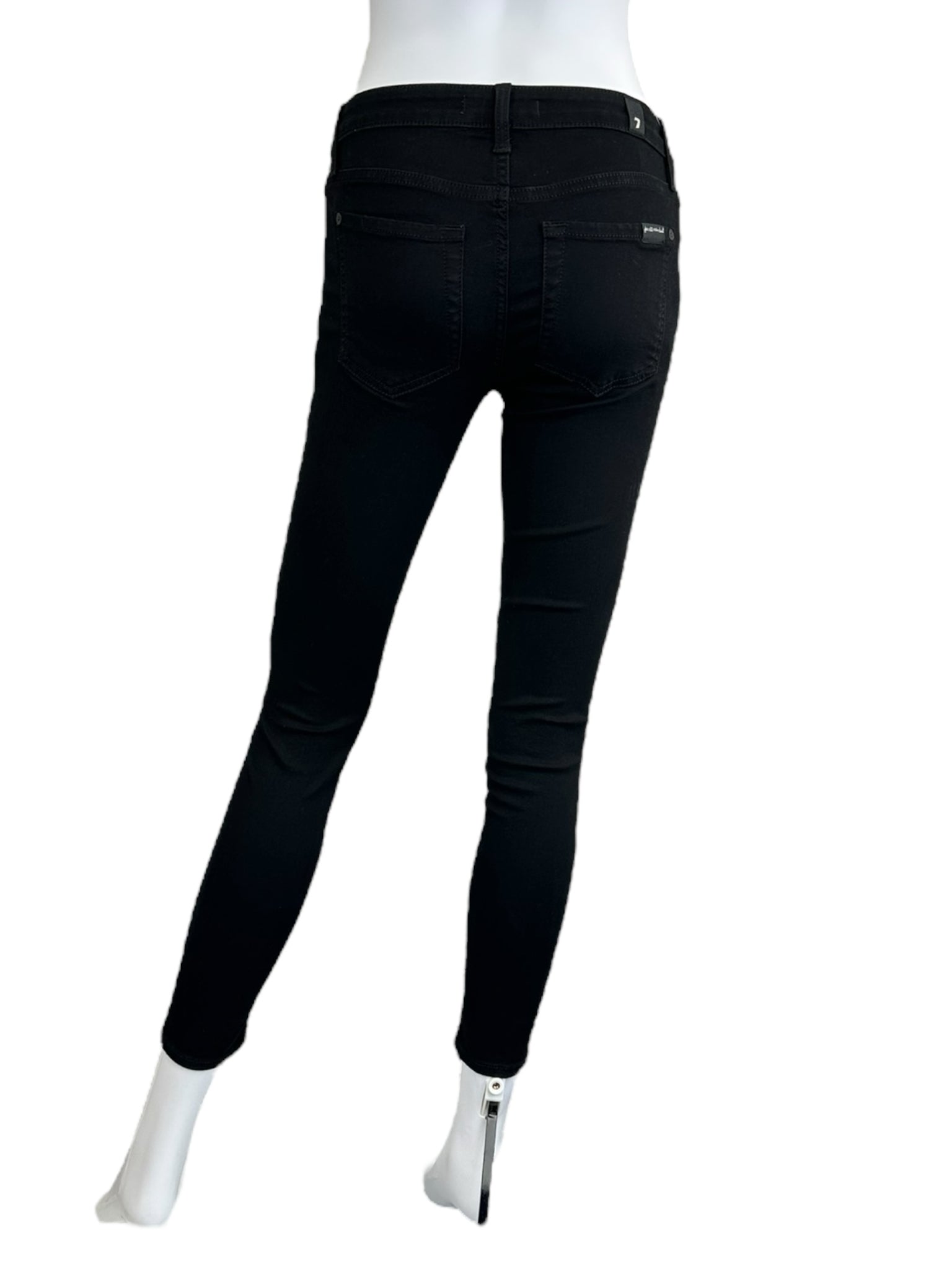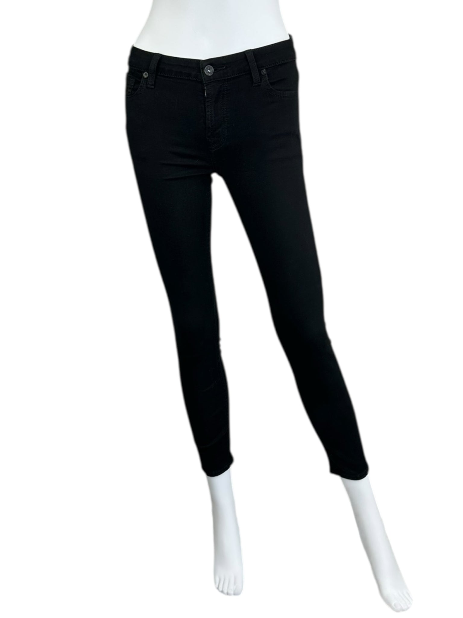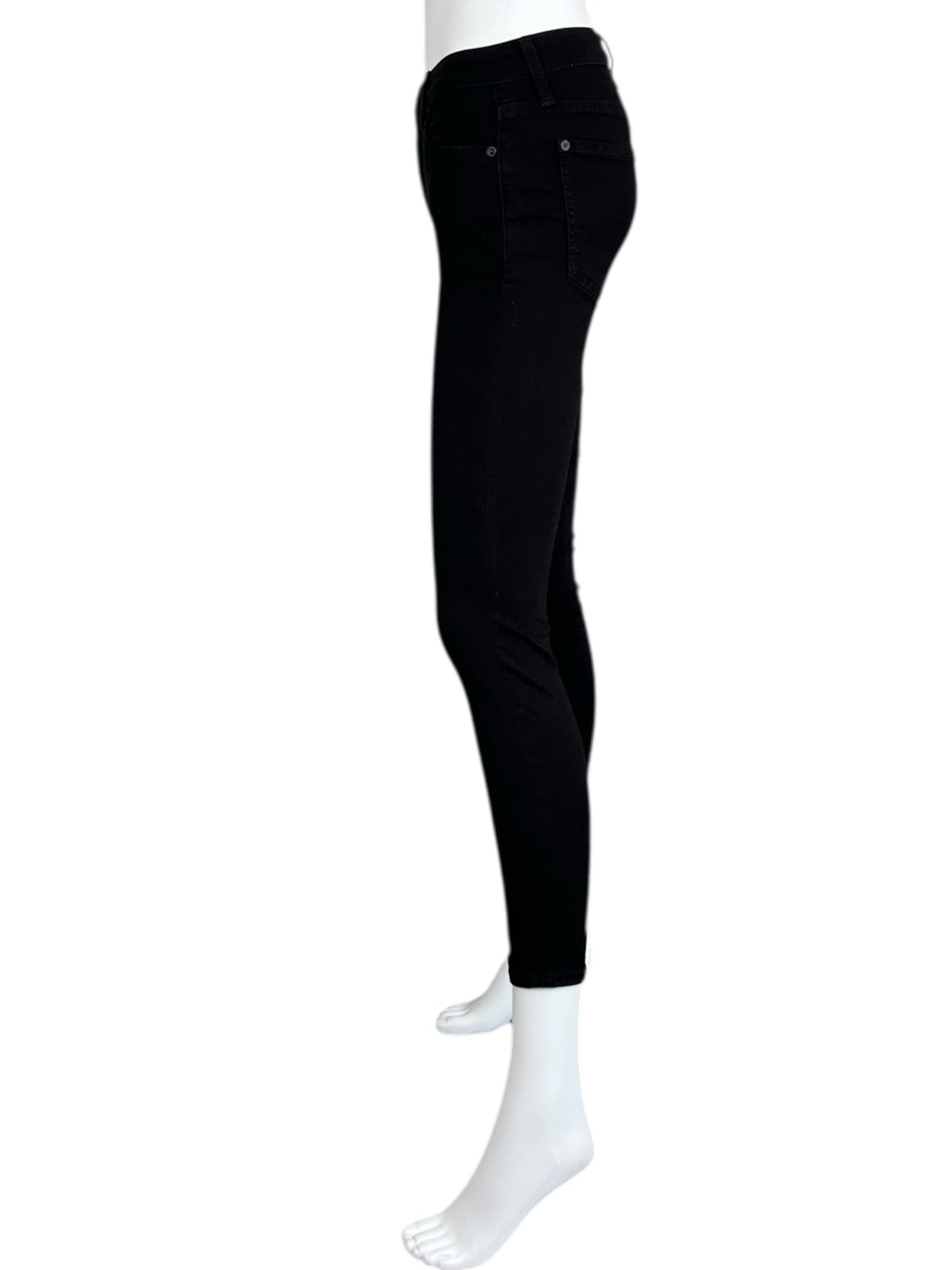 Black midrise skinny jeans with a classic 5 pocket design and zipper/button fly closure.