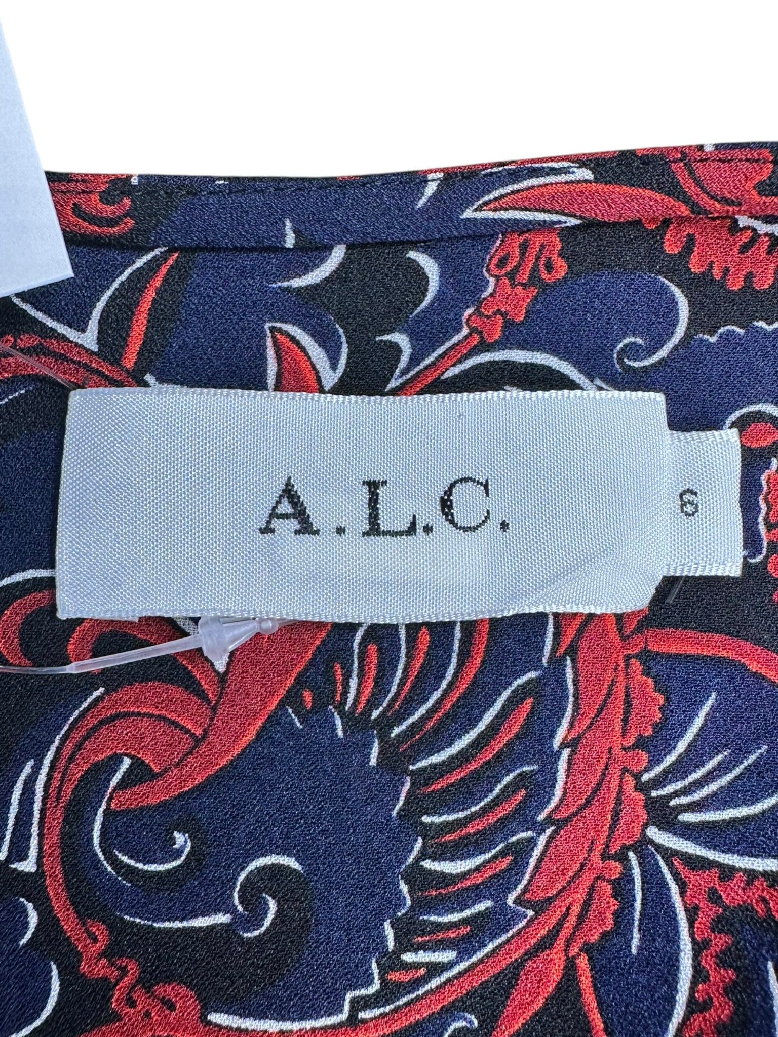 A.L.C. Navy 100% Silk Print Dress Size 6