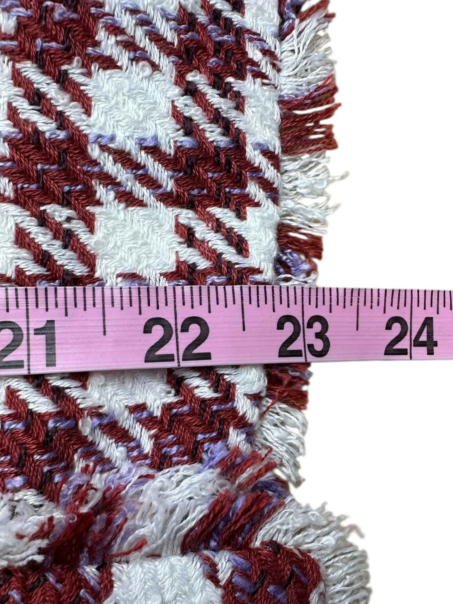 houndstooth red/white/purple/ frayed ends ls w side pckts