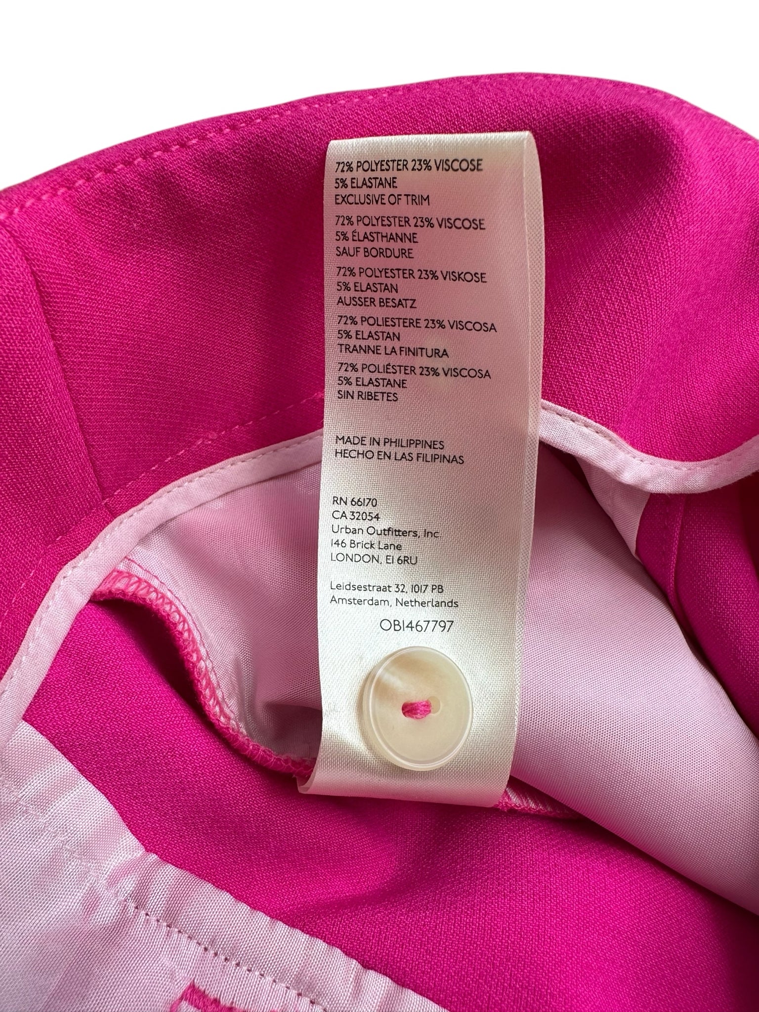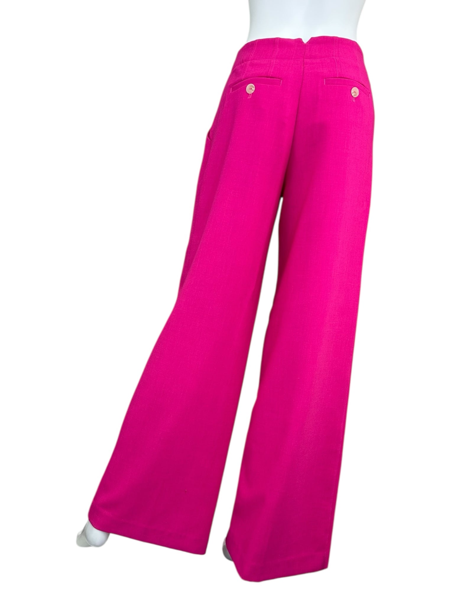 New with tags! Bright pink high waisted pleated wide leg trousers with front pockets, back pockets with button closure and a front zipper/double button closure.