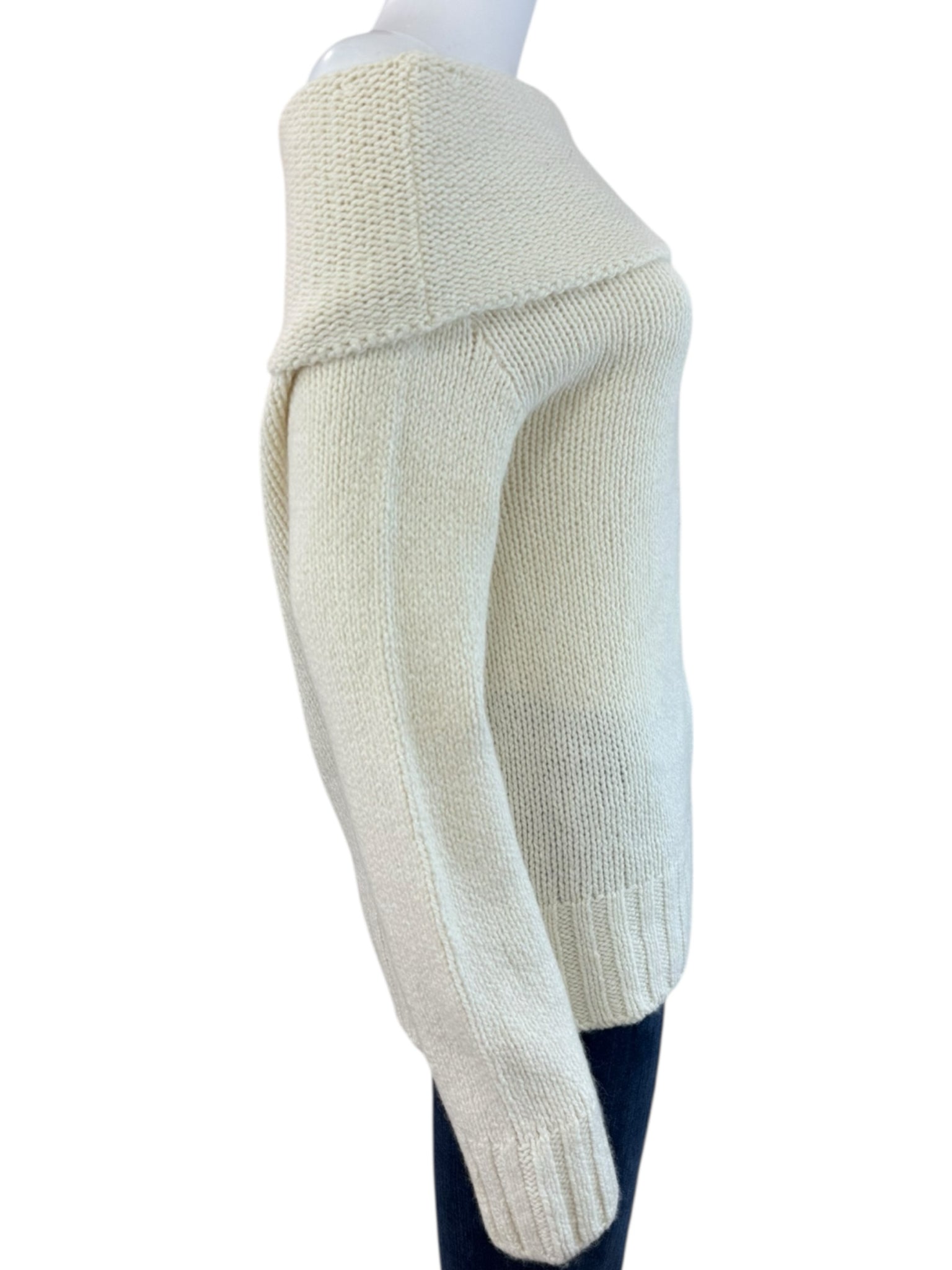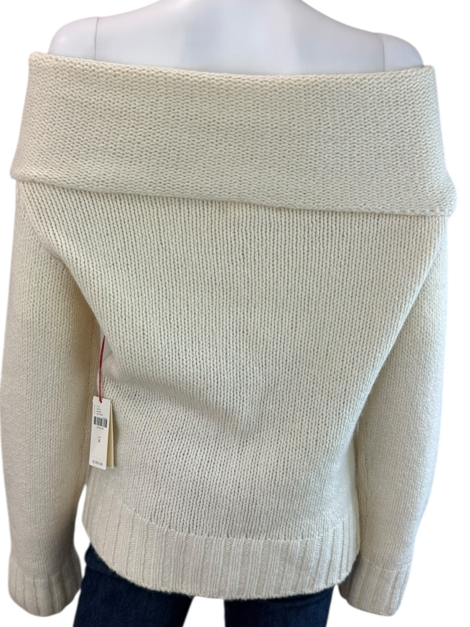 New With Tags! Super soft ivory pullover sweater with long sleeves and an off the shoulders neckline. Sweater is made from a wool blend material.