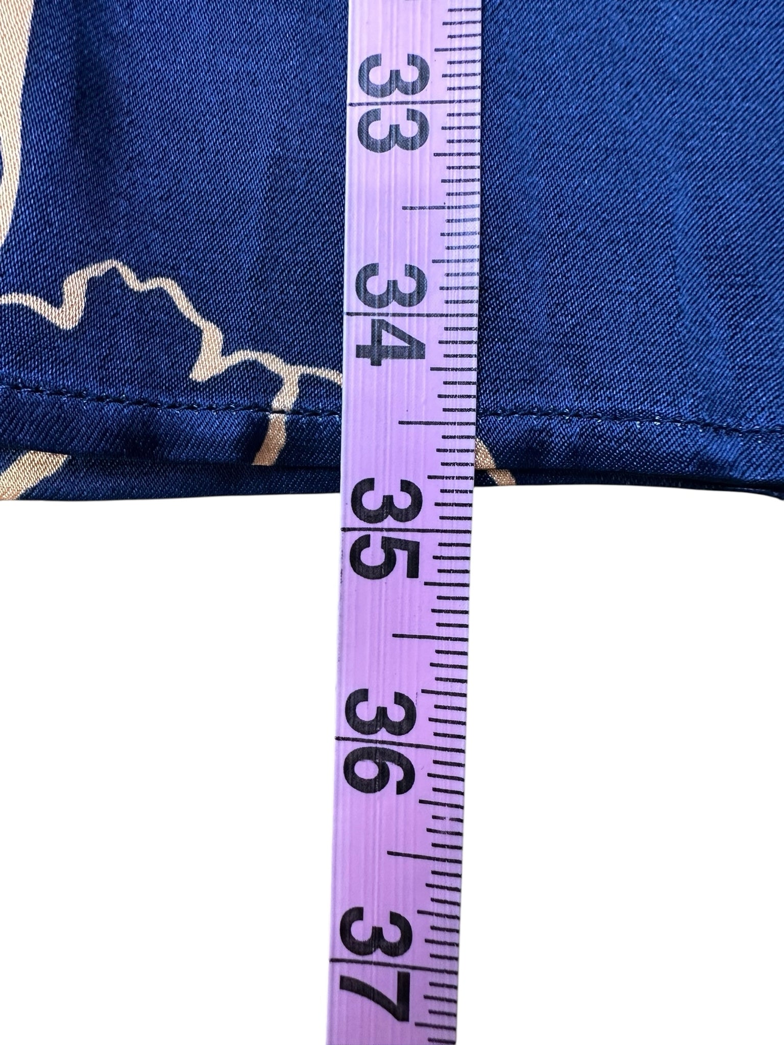 New from local boutique! Navy & orange satin floral print long sleeve mini wrap dress with tie closure.