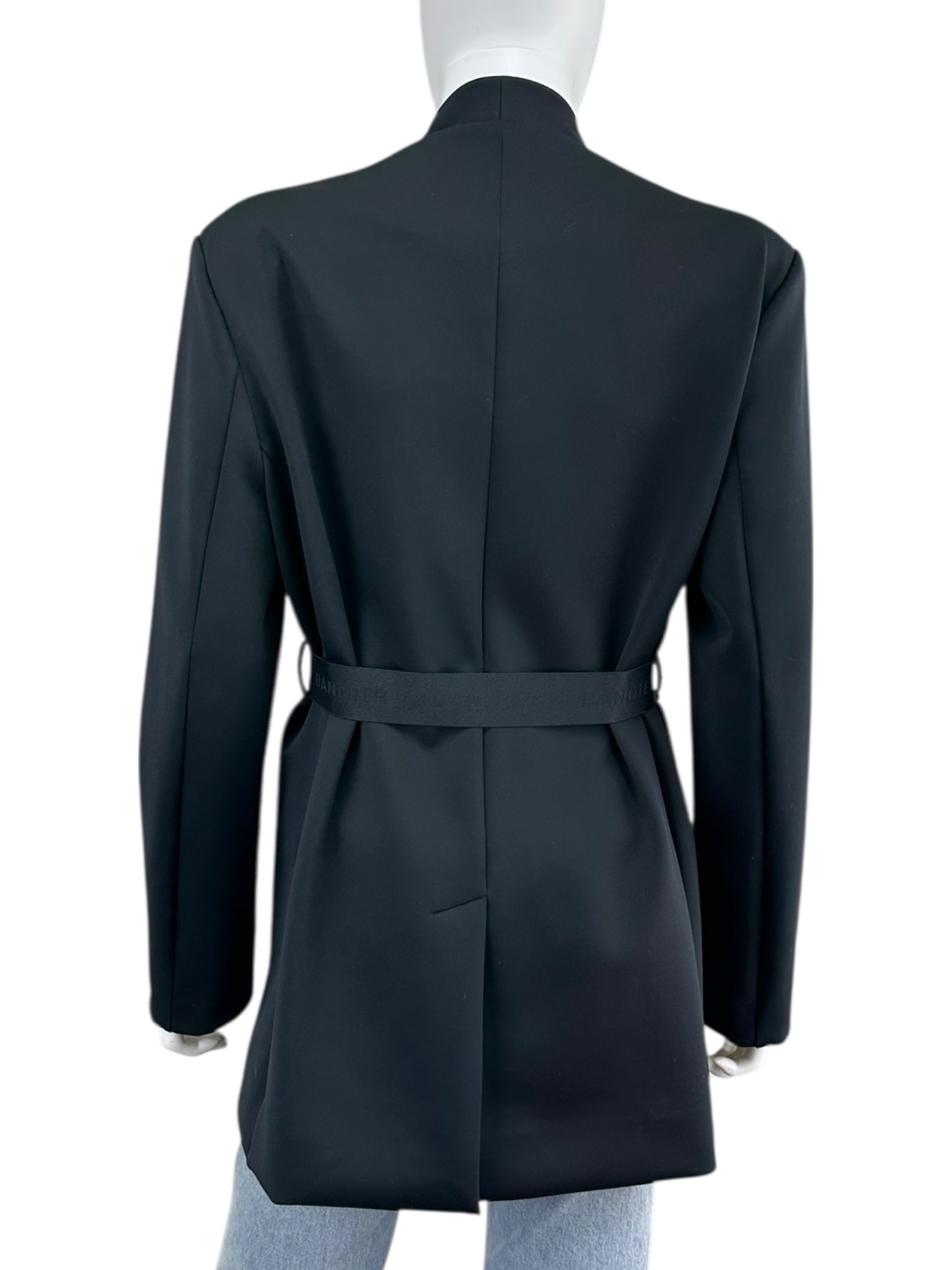 Black sport logo blazer with long sleeves, logo branded strap, front zipper closure pockets and a front snap closure front.