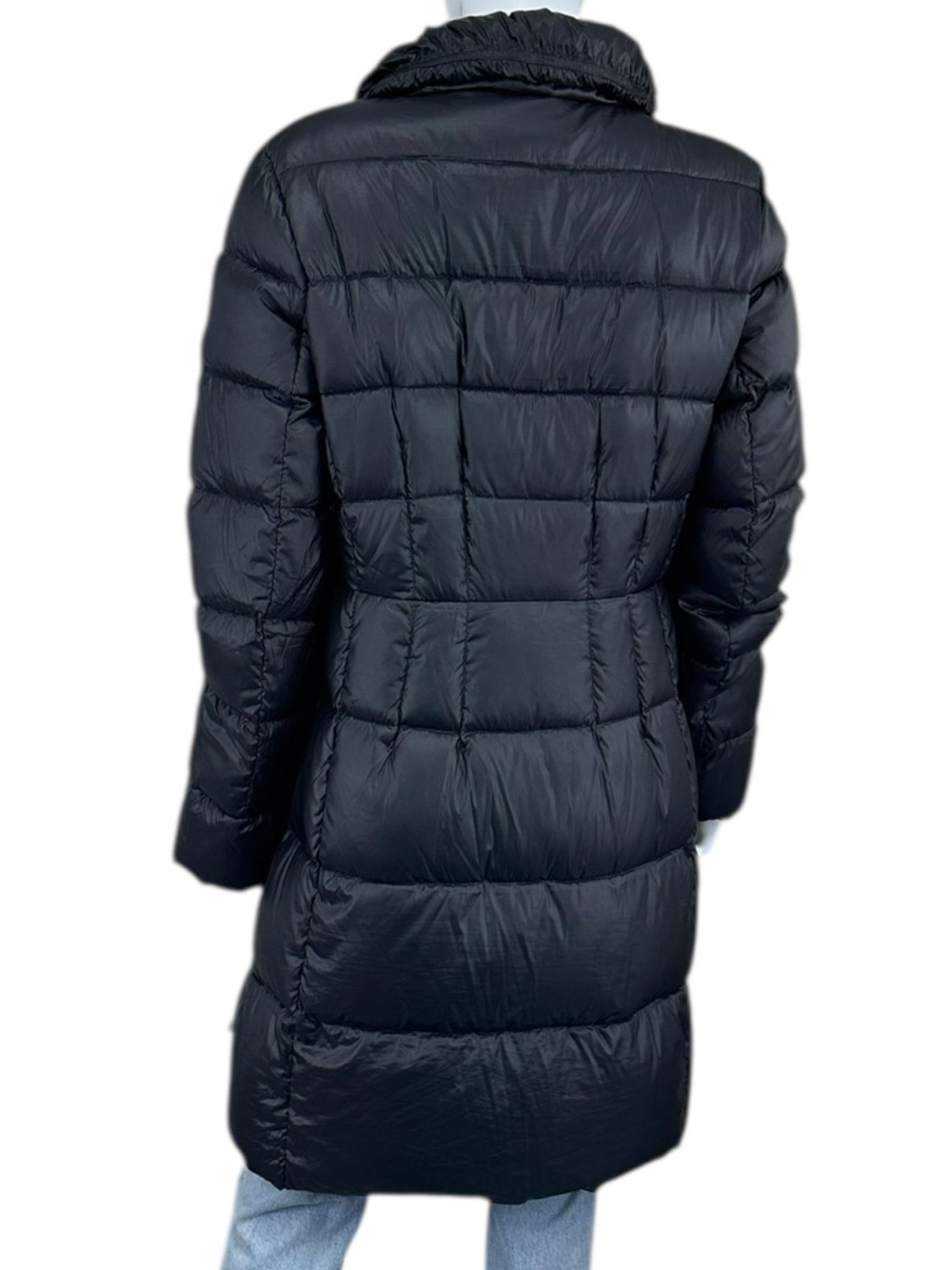 black puffer ankle length ls full zip w side pckts