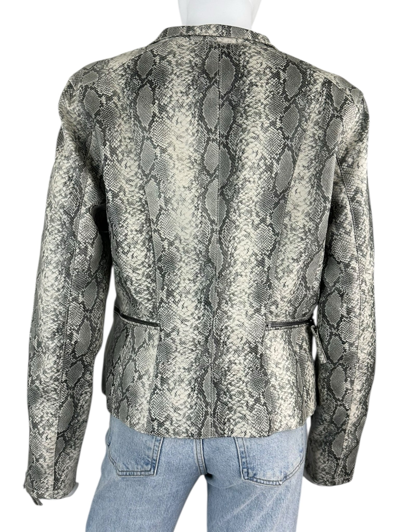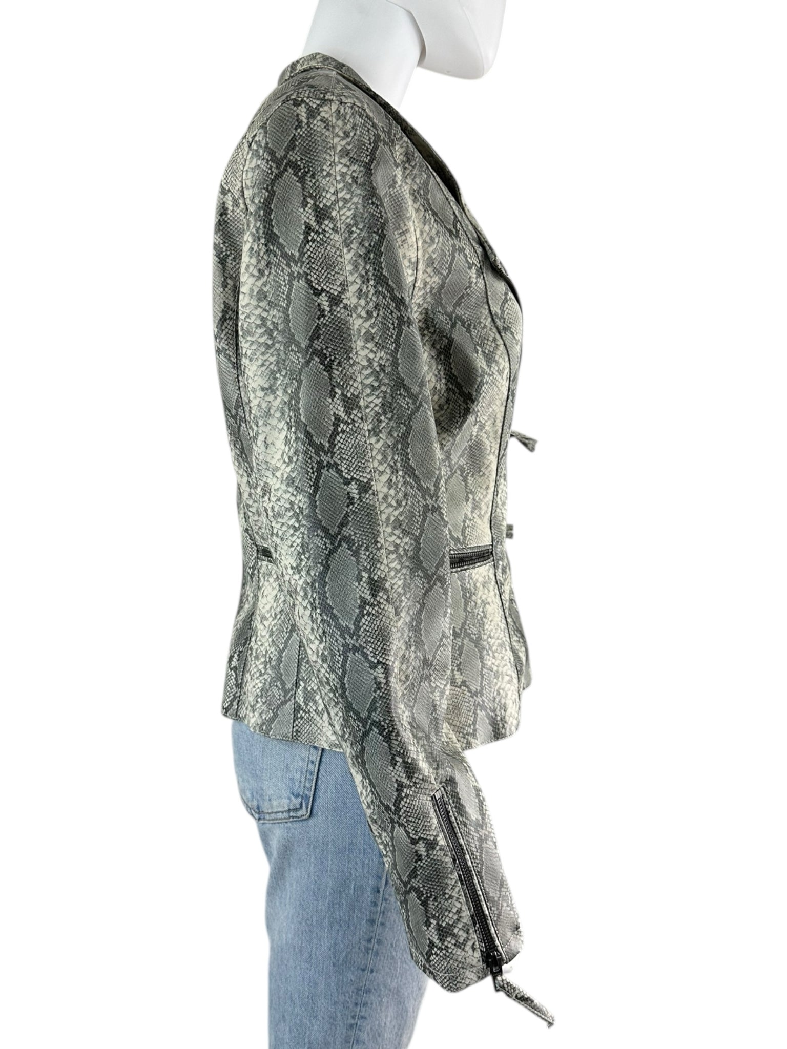 nwt gray white snakeskin ls collared zip down zip clsr pckts