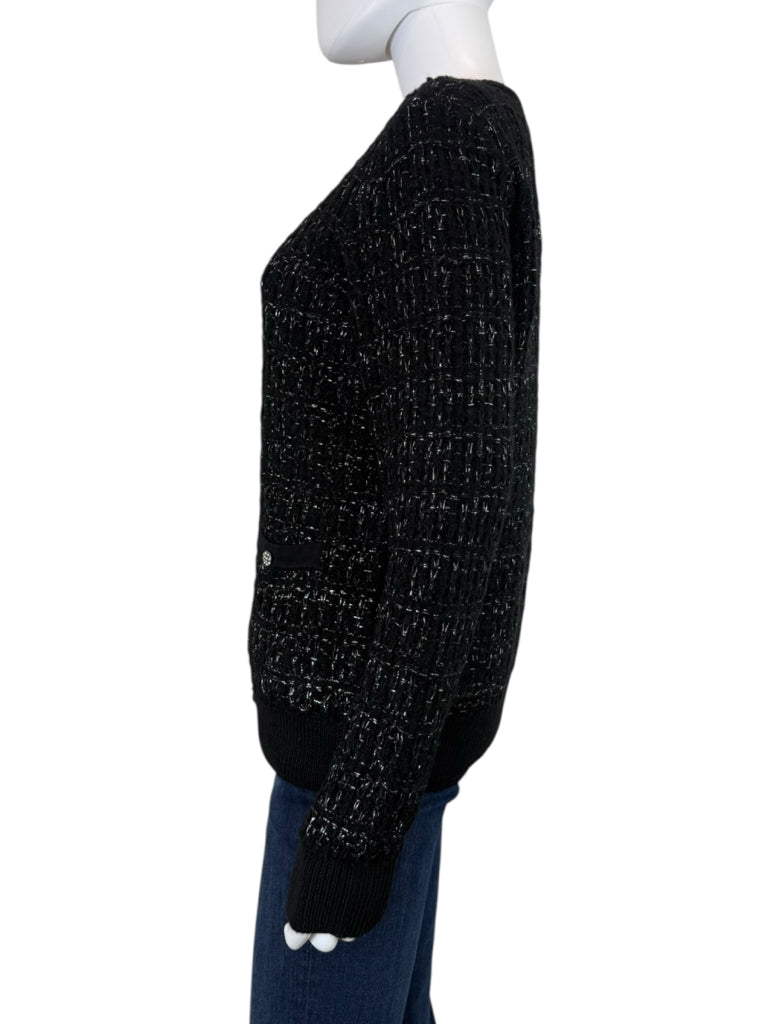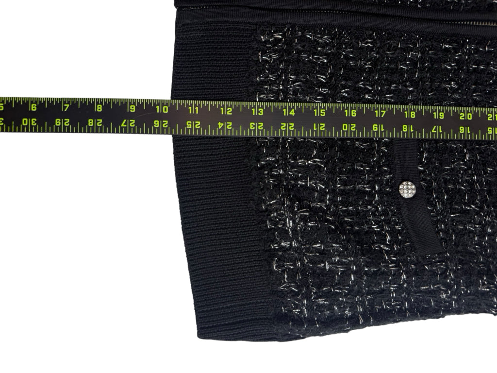 Black tweed long sleeve with silver threads and full zip long sleeve with matching tank.