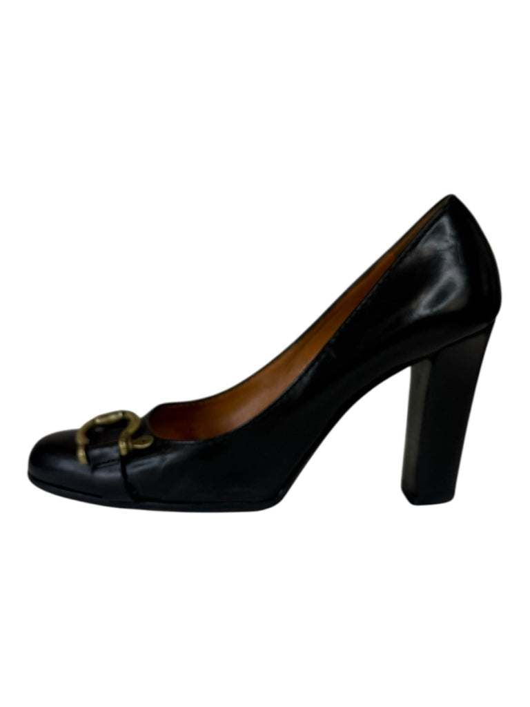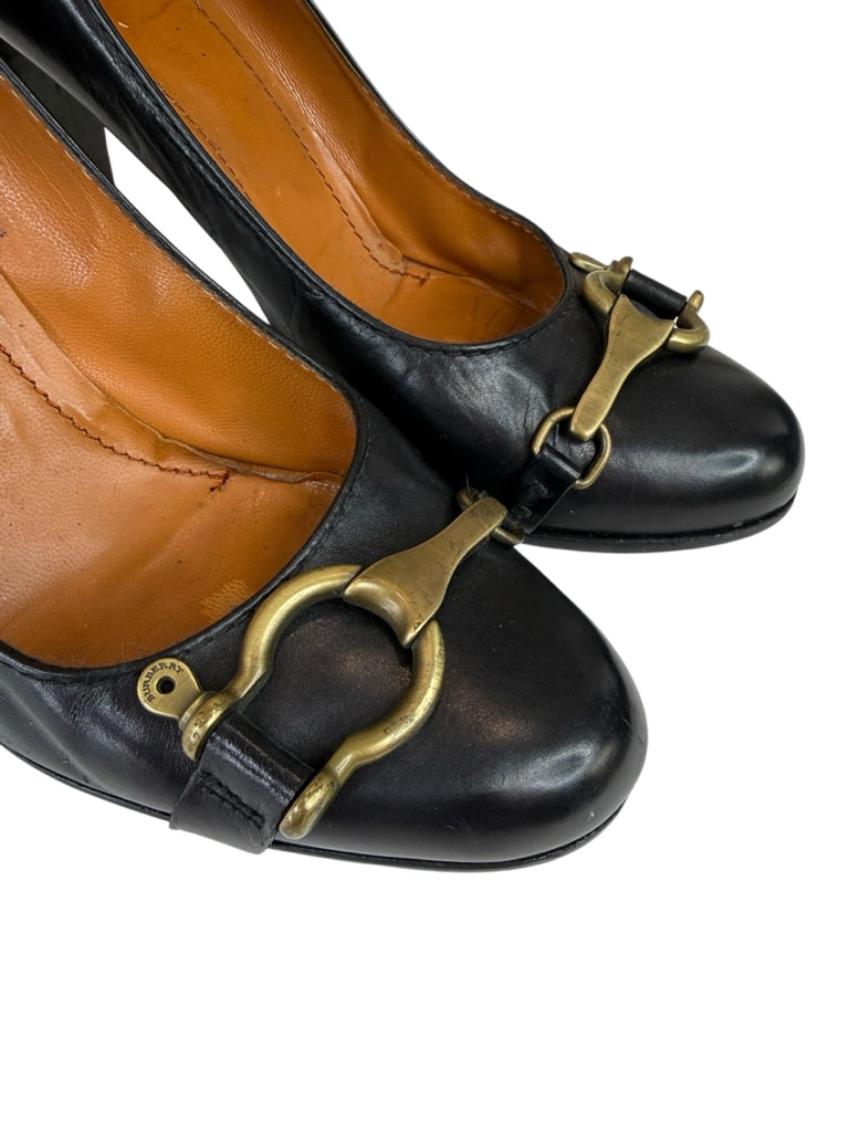 BURBERRY Black Leather Horsebit Pumps Size 38.5