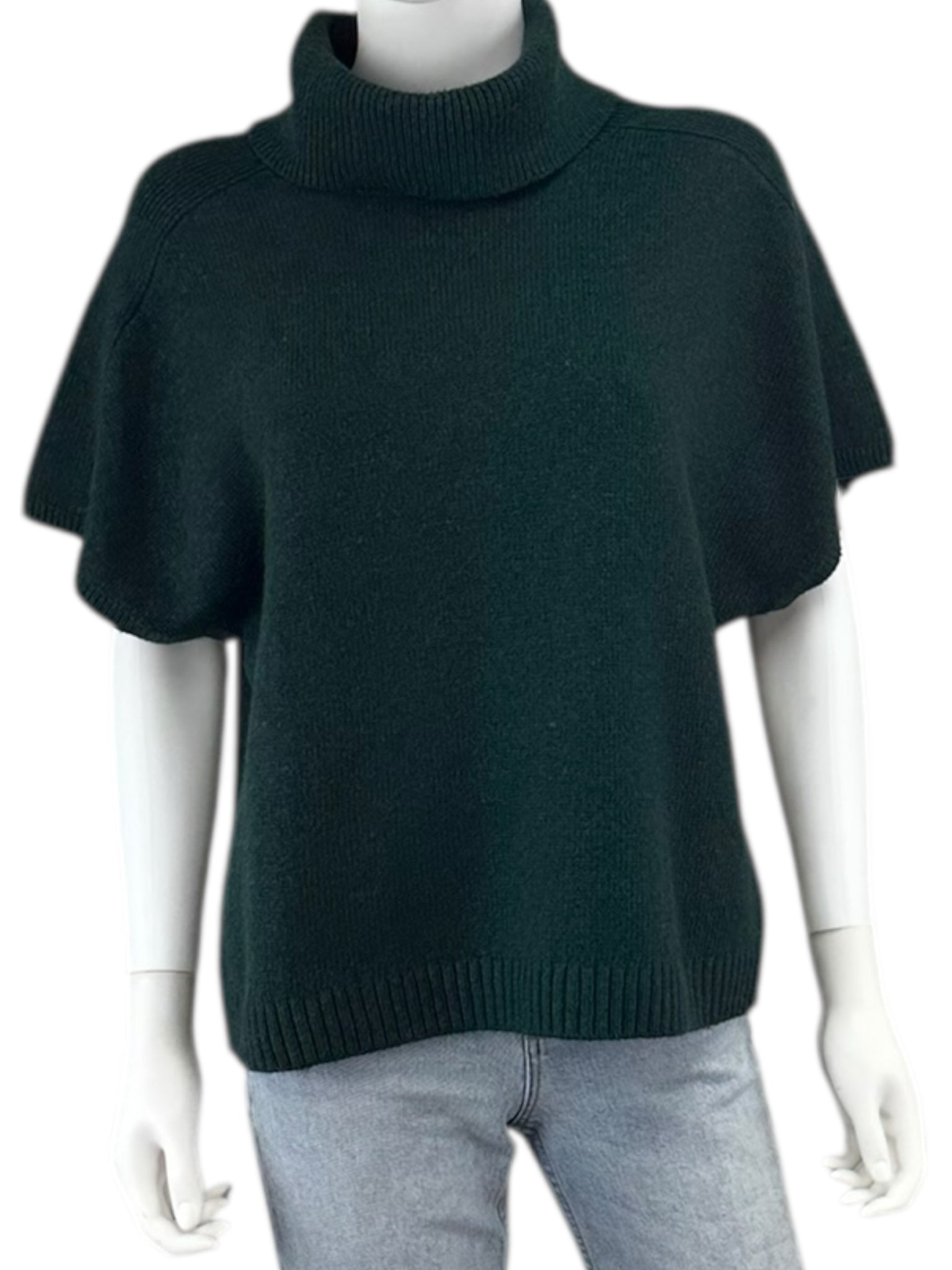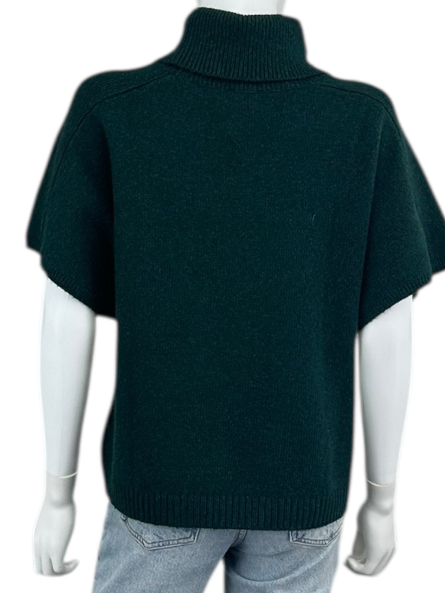 Hunter green heather boxy pullover turtleneck sweater with short sleeves. Sweater is made from a cotton blend yarn.