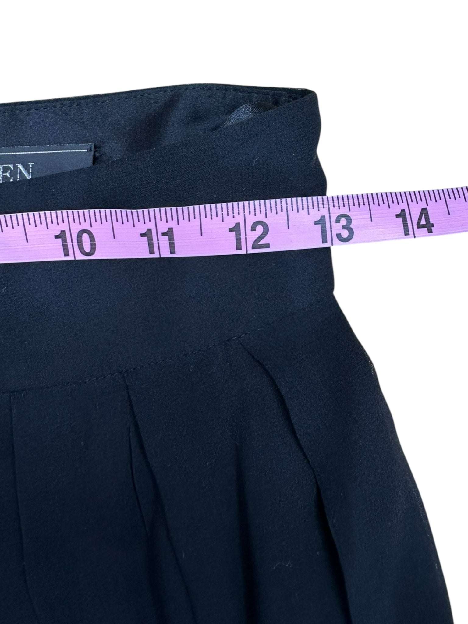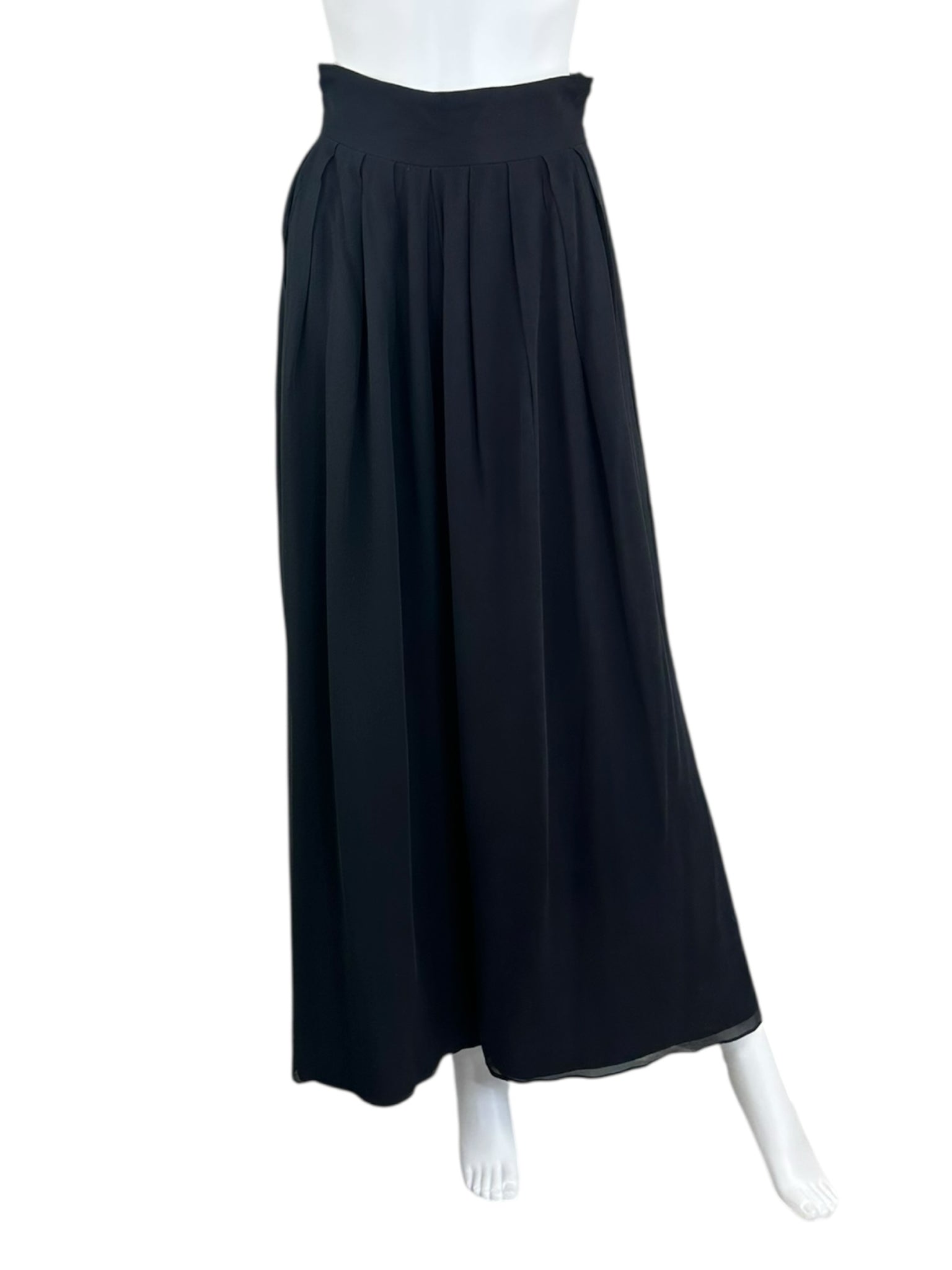 Carmen Marc Valvo black 100% silk wide leg pants with a high waist and flowy style featuring zipper closure.