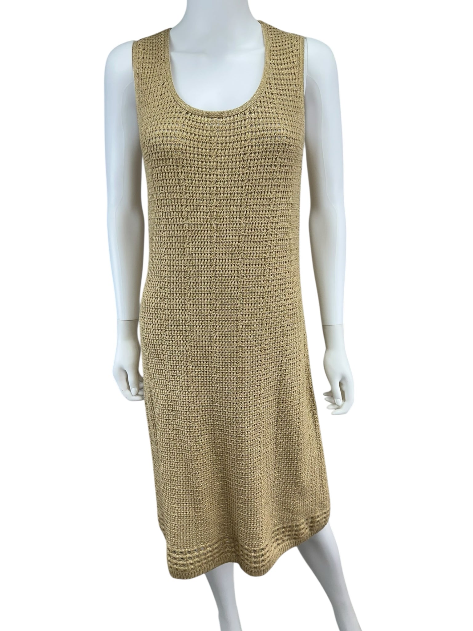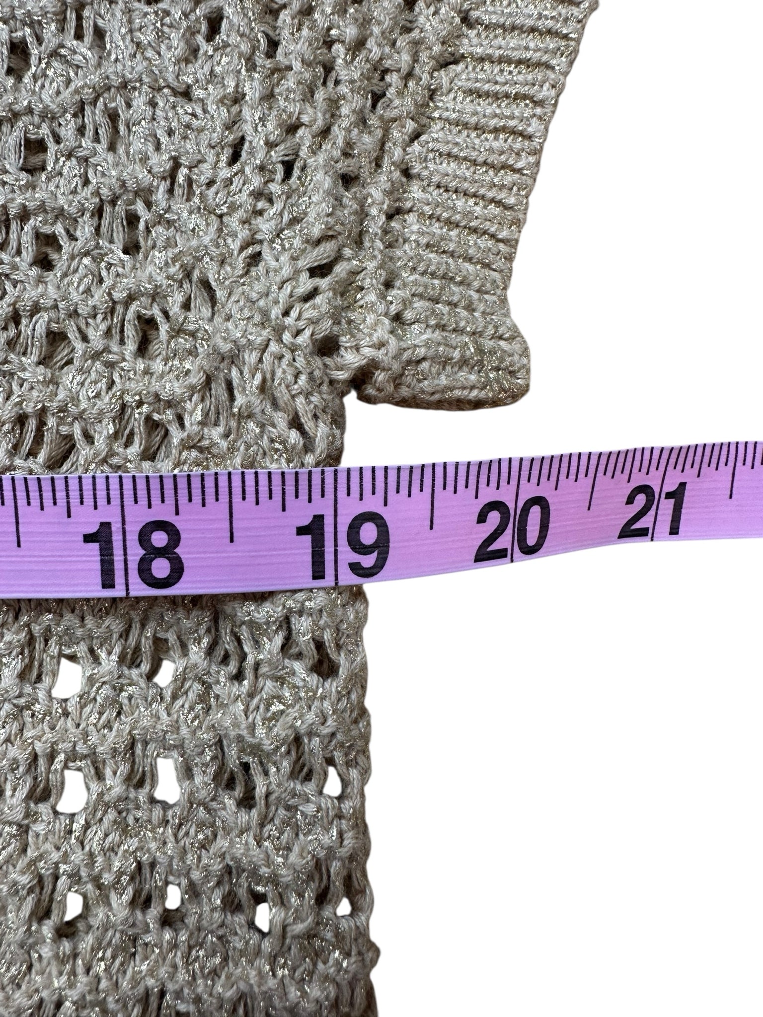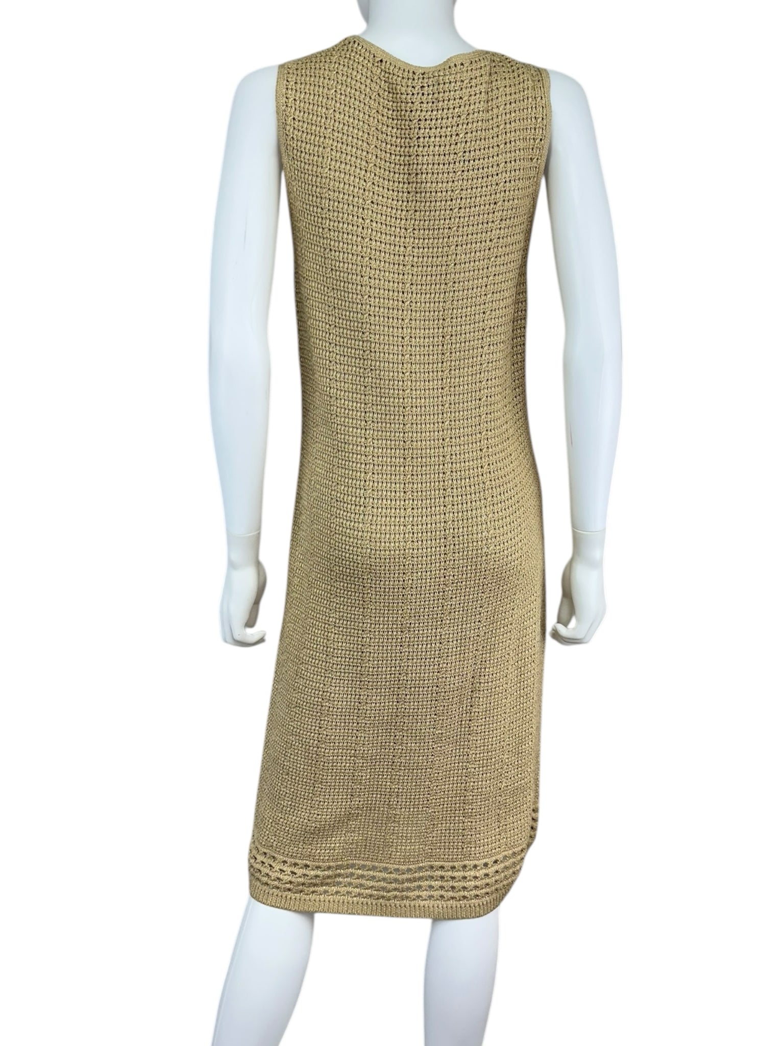 100% cotton knit cream gold shimmer dress knee length w cardi ss clasp clsr neckline