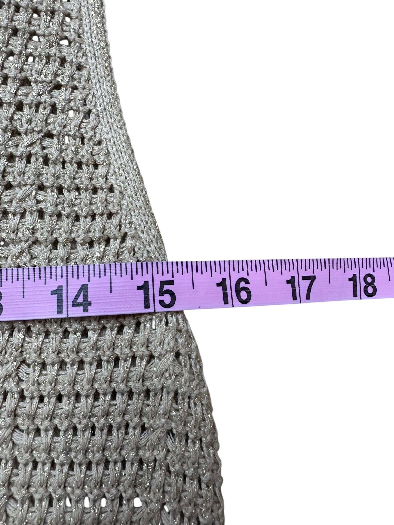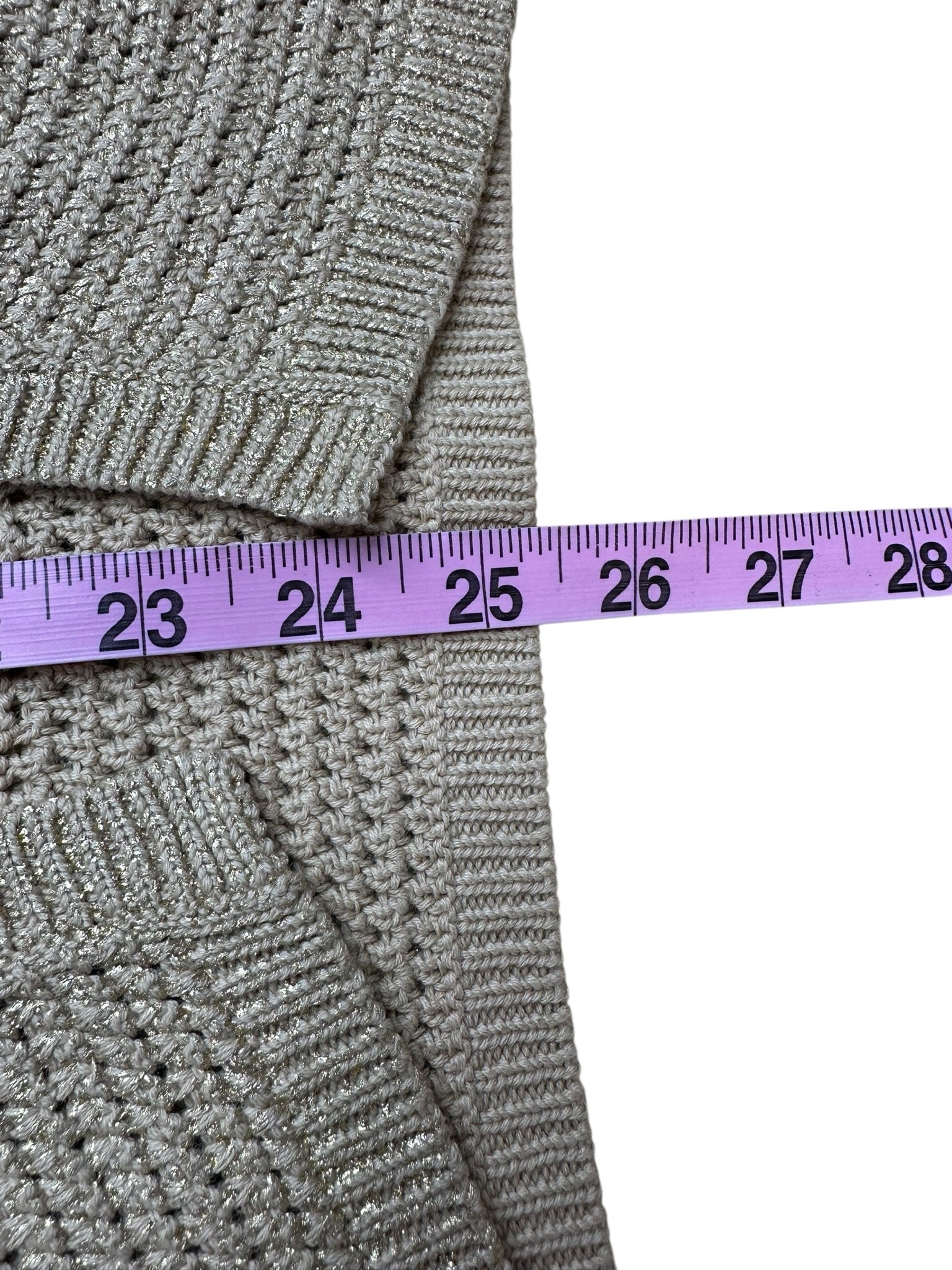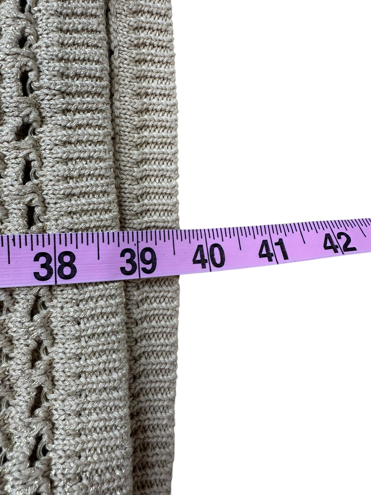 100% cotton knit cream gold shimmer dress knee length w cardi ss clasp clsr neckline