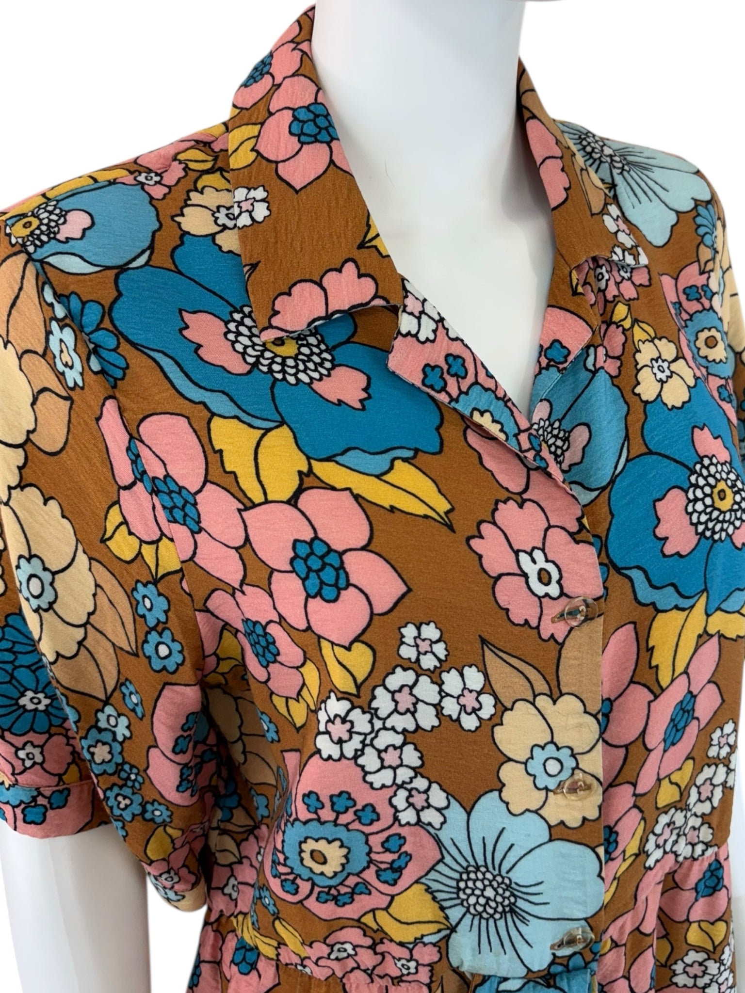 DODO Bar OR Brown Floral Nancy Shirt Dress Size L