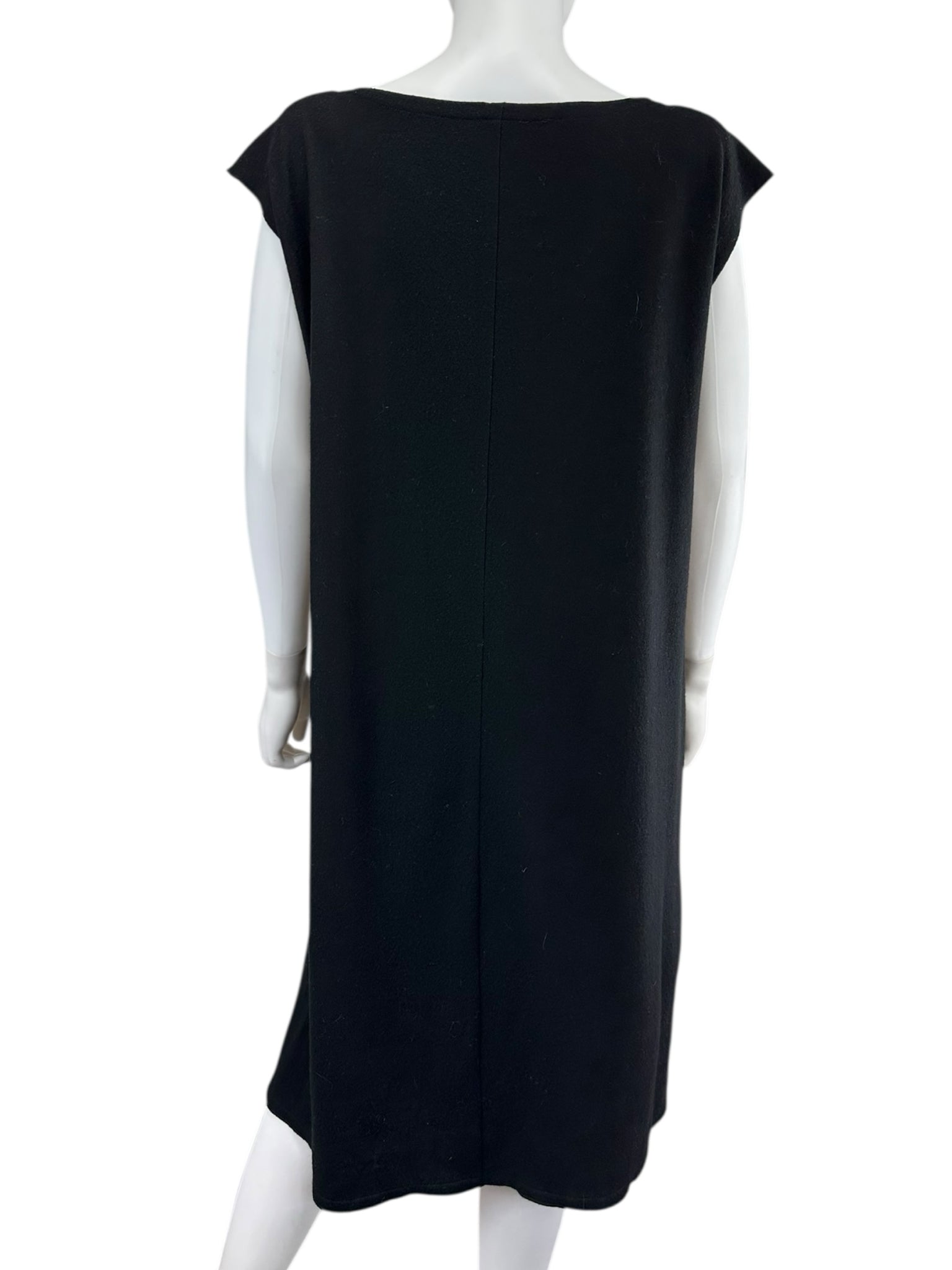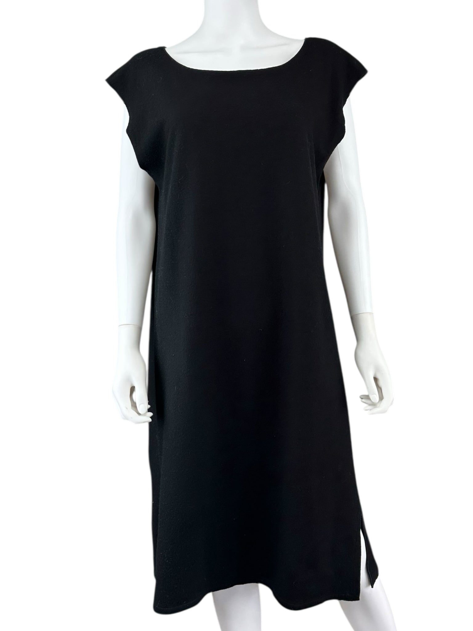 EILEEN FISHER Black 100% Wool Midi Dress Size L
