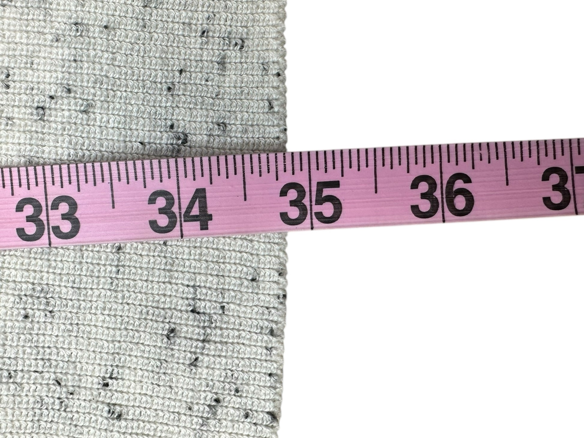 White and black confetti duster cardigan with long sleeves, front pockets and an open front.