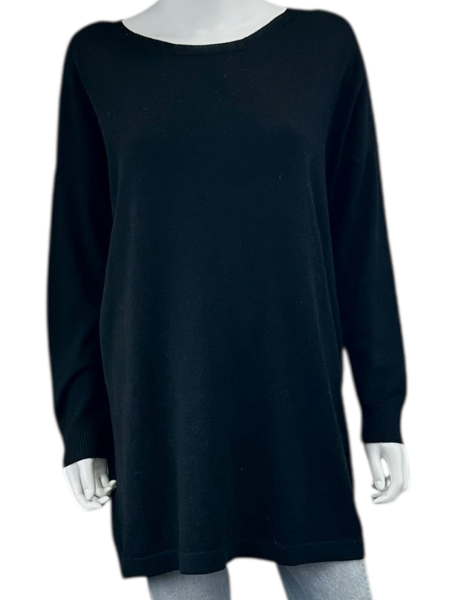 100% merino wool black long sleeve knit mini dress. With round neck, thin and airy.