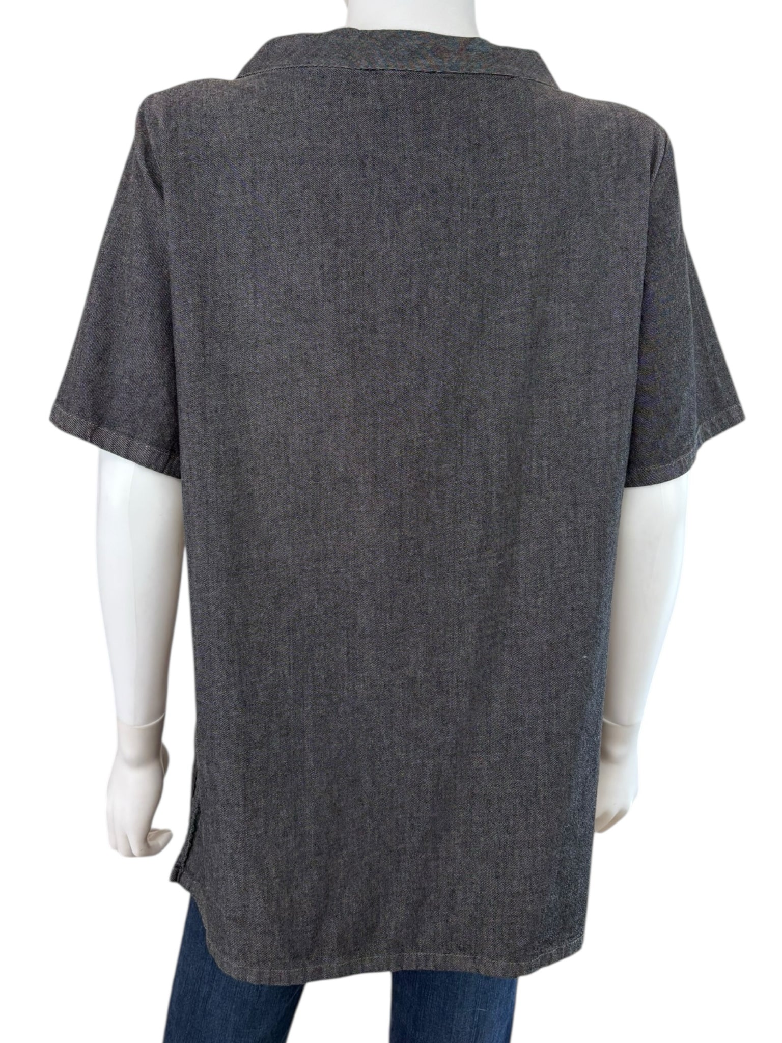 EILEEN FISHER Gray Organic Cotton Blouse Size XS