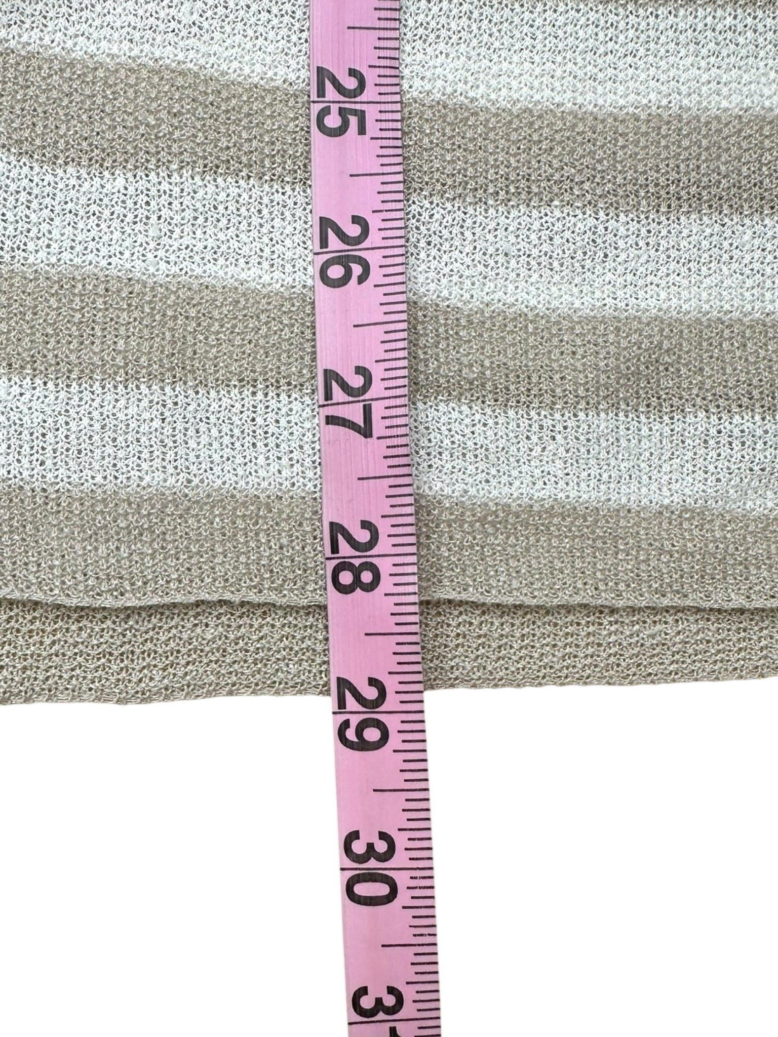 White and cream striped long sleeve and round neck knit sweater, light weight.