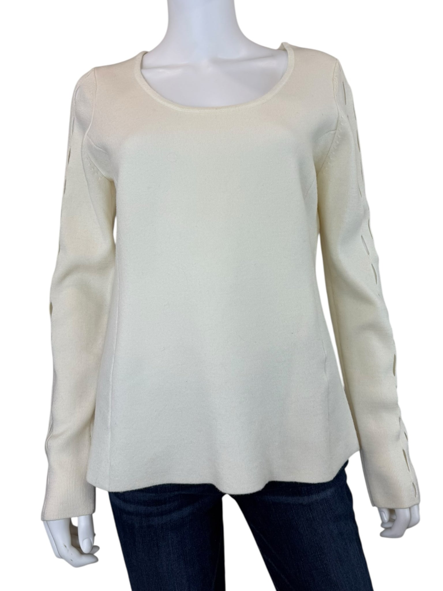 ELIE TAHARI Cream Extra Fine Merino Wool Sweater Size L