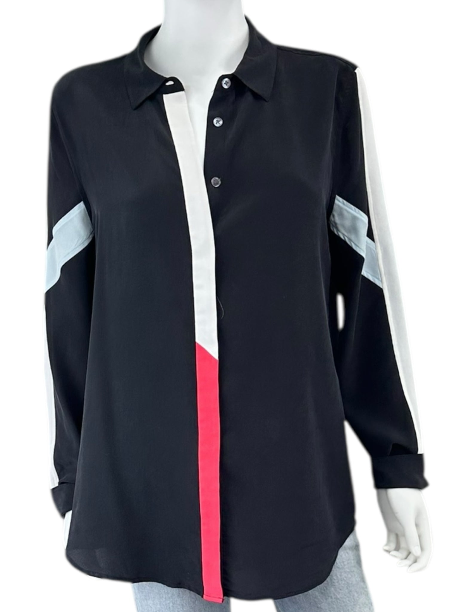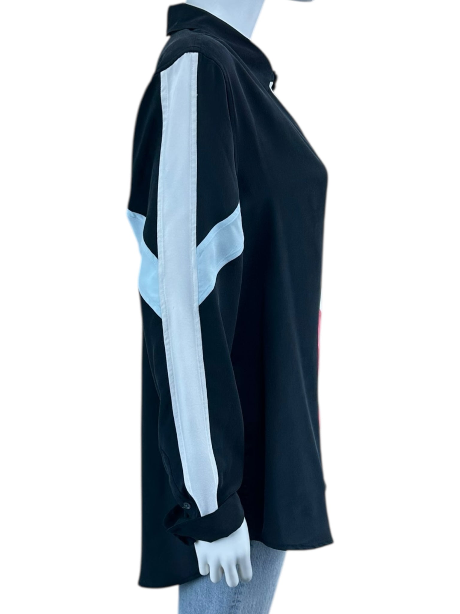 EQUIPMENT Black Colorblock Silk Button-down Shirt Size L