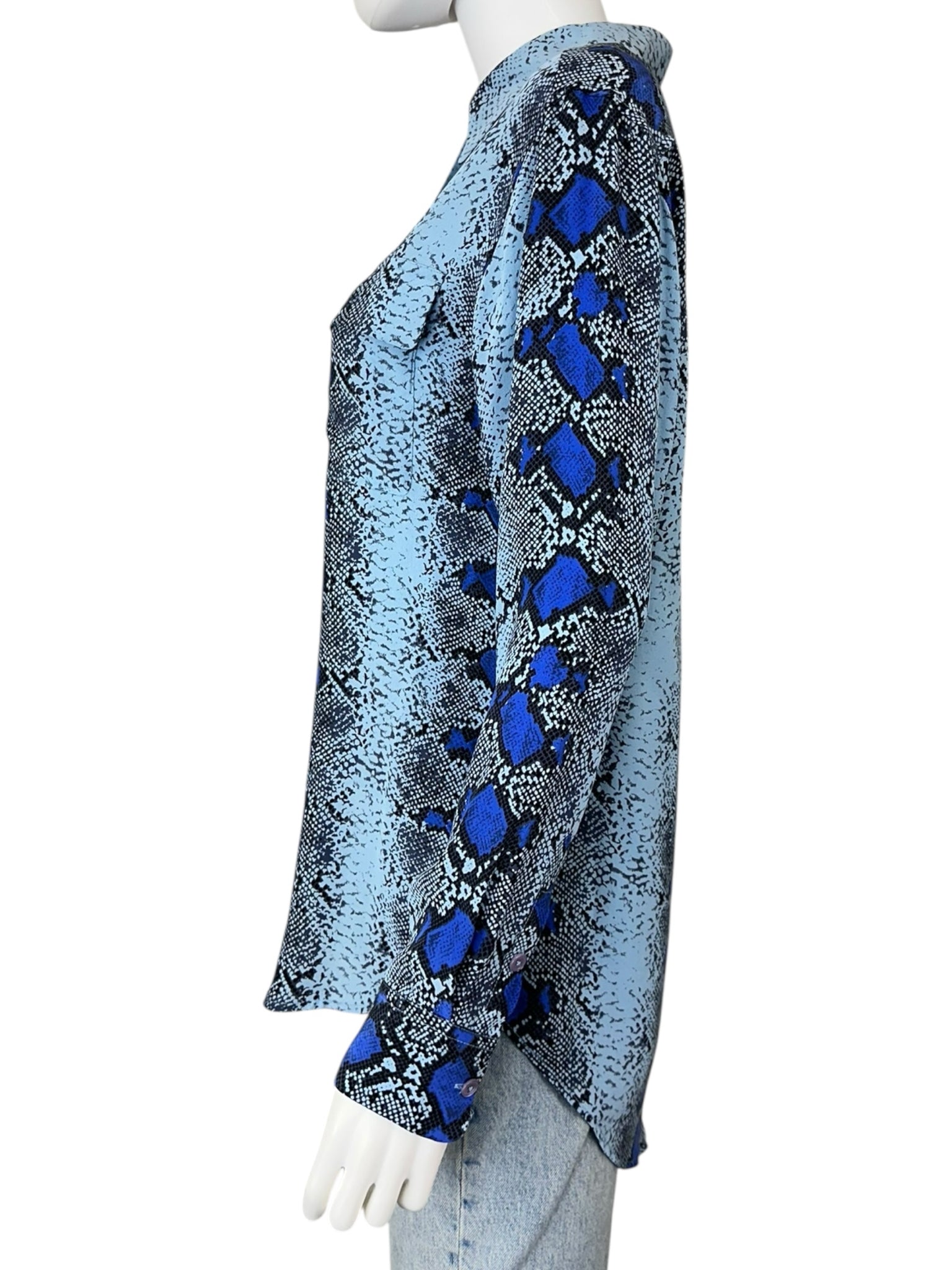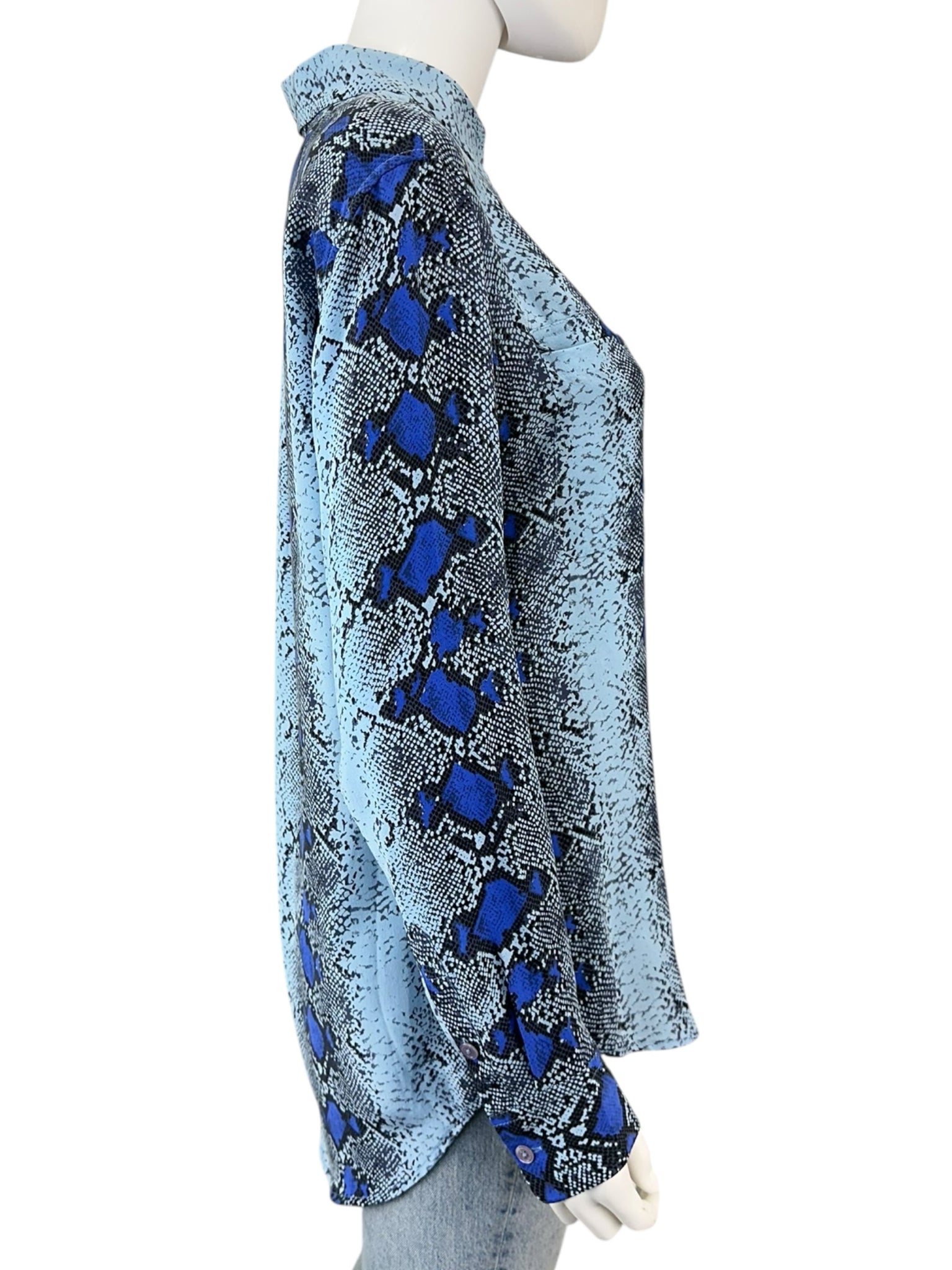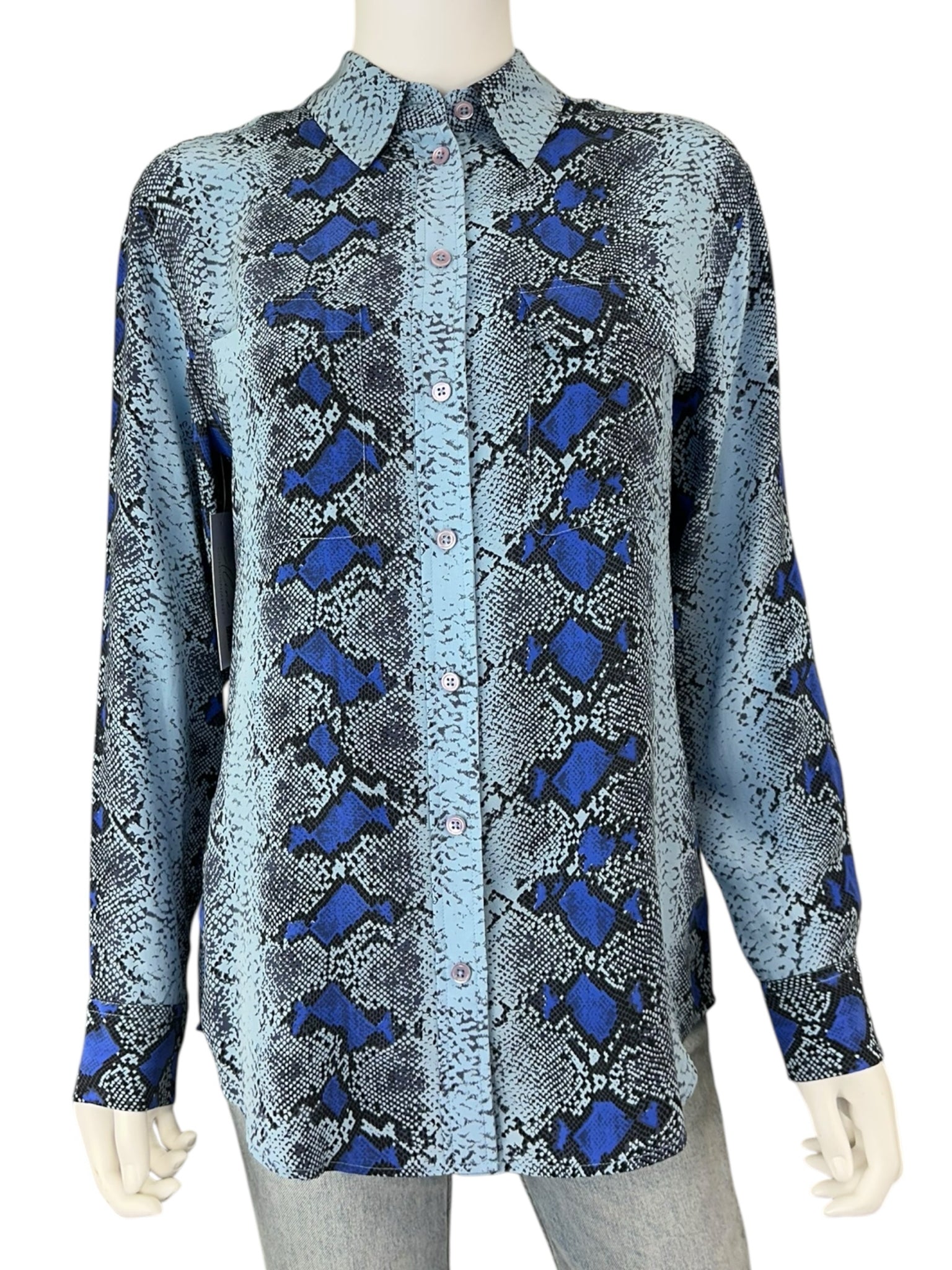 EQUIPMENT 100% Silk Blue Python Print Button-Down Shirt Size XS