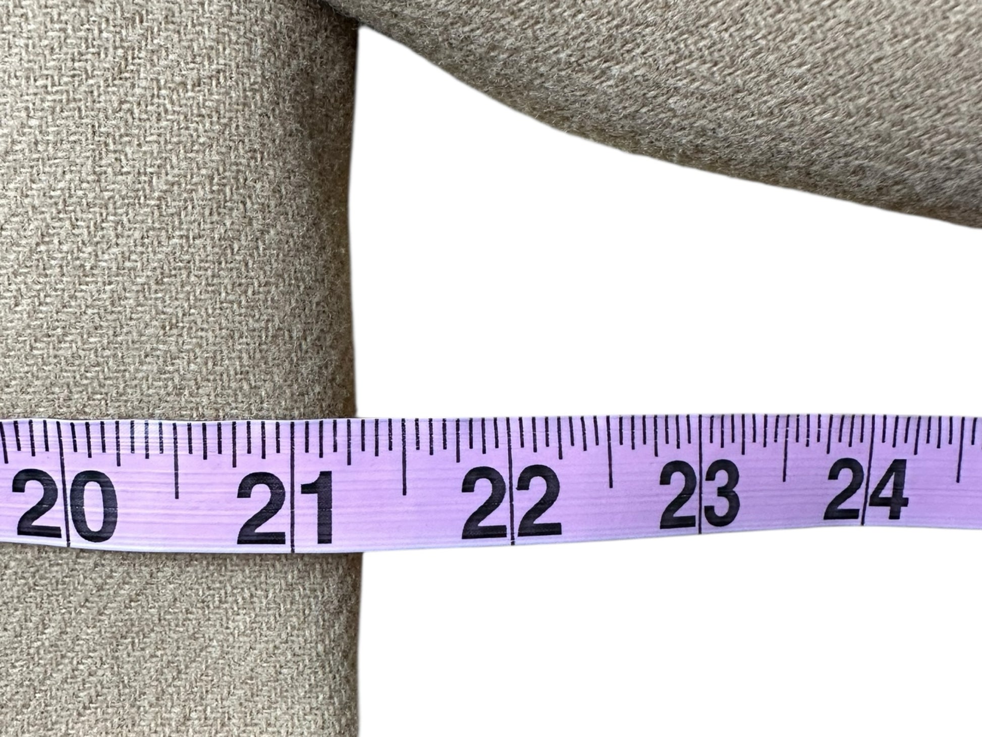 100% new wool tan notch collared blazer with long sleeves, front pockets and button front closure.