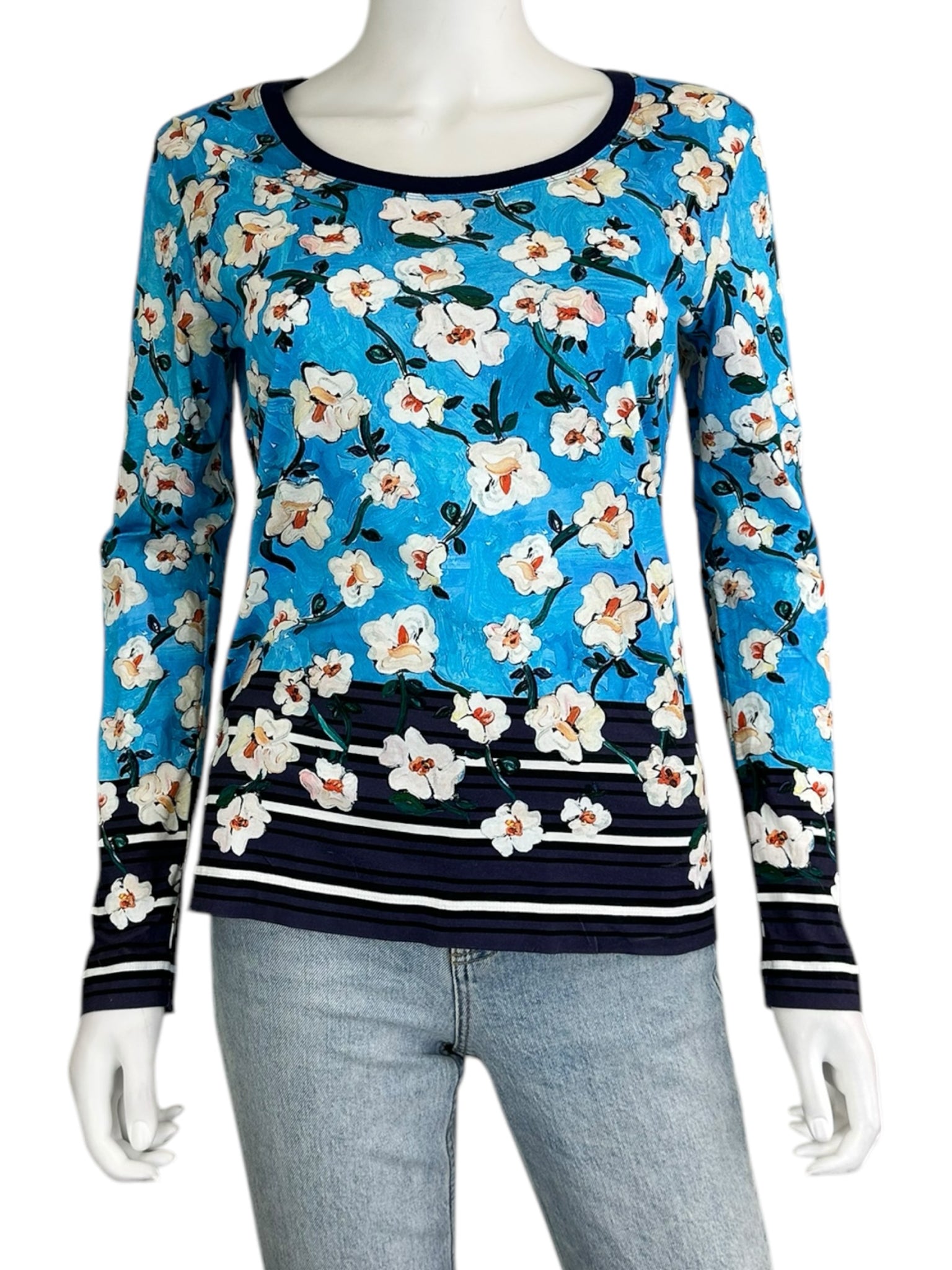 ESCADA Blue Floral Long Sleeve Top Size S