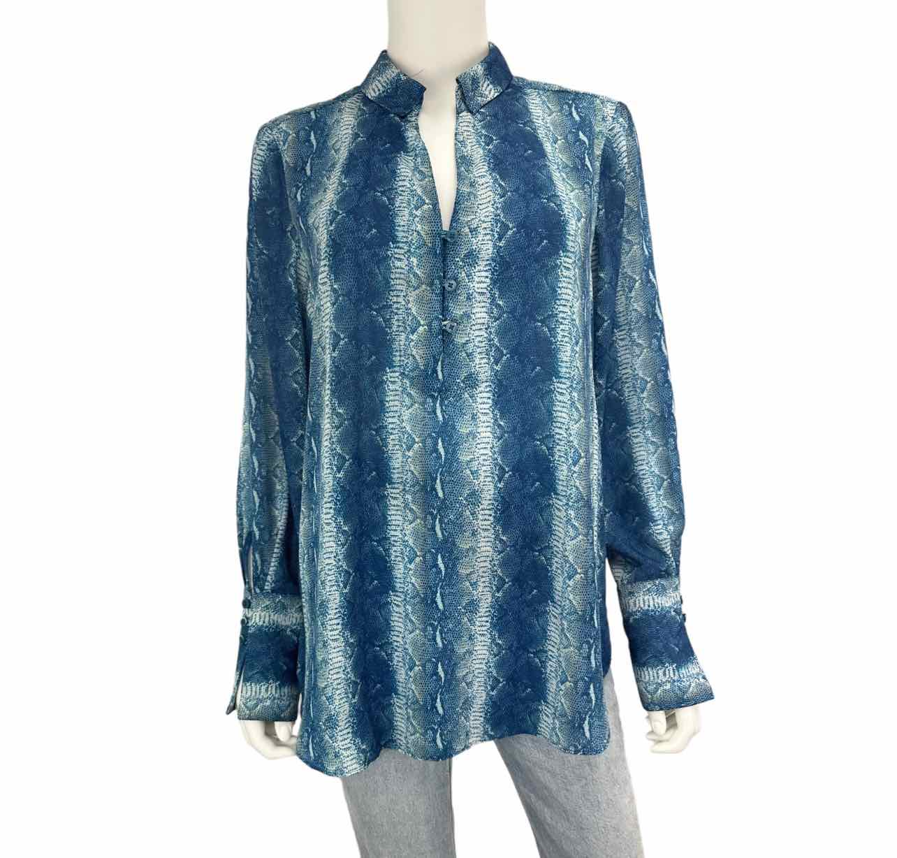 ETCETERA Blue Snake Print Top Size 8