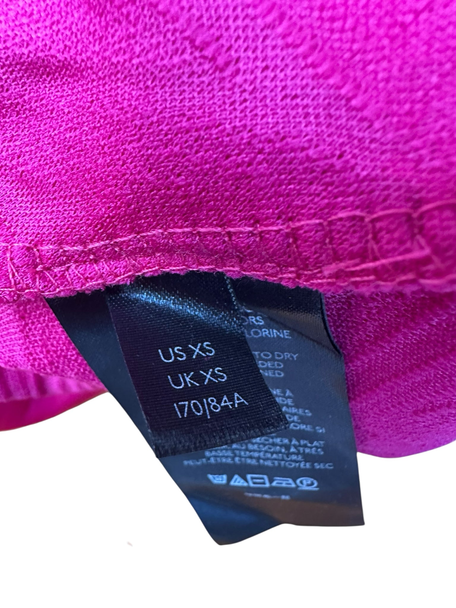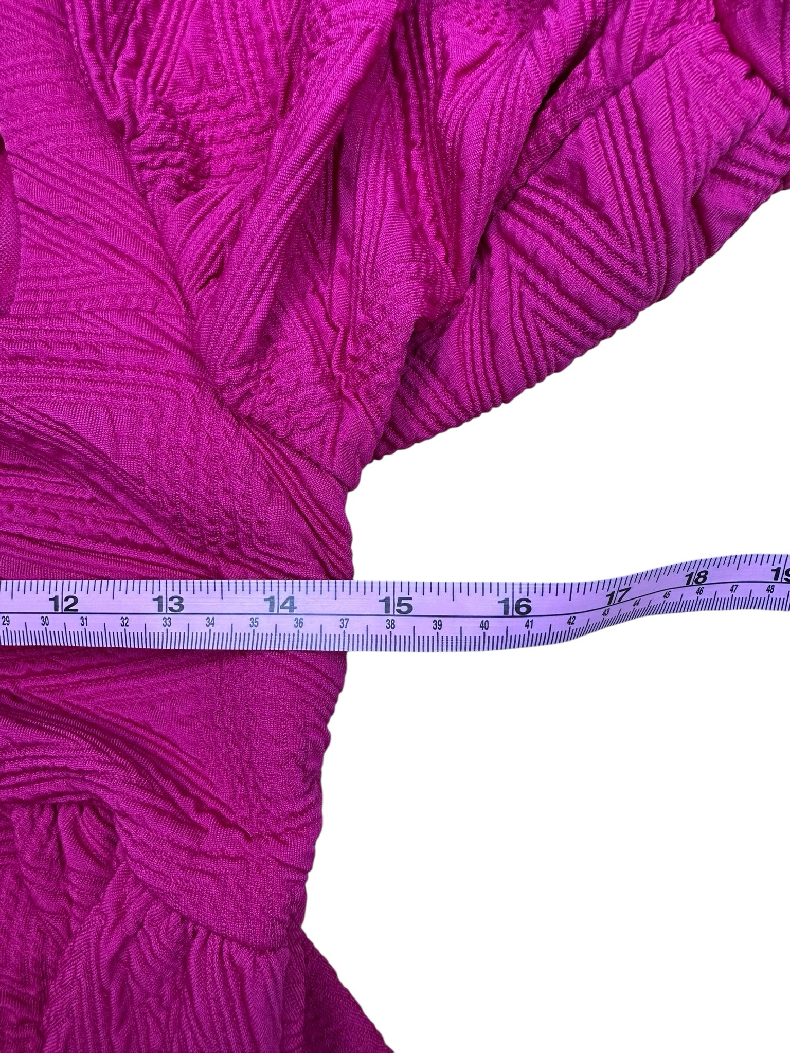 NWT fuchsia textured puff short sleeve mini babydoll dress with a square neck and open bow tie back detailing.