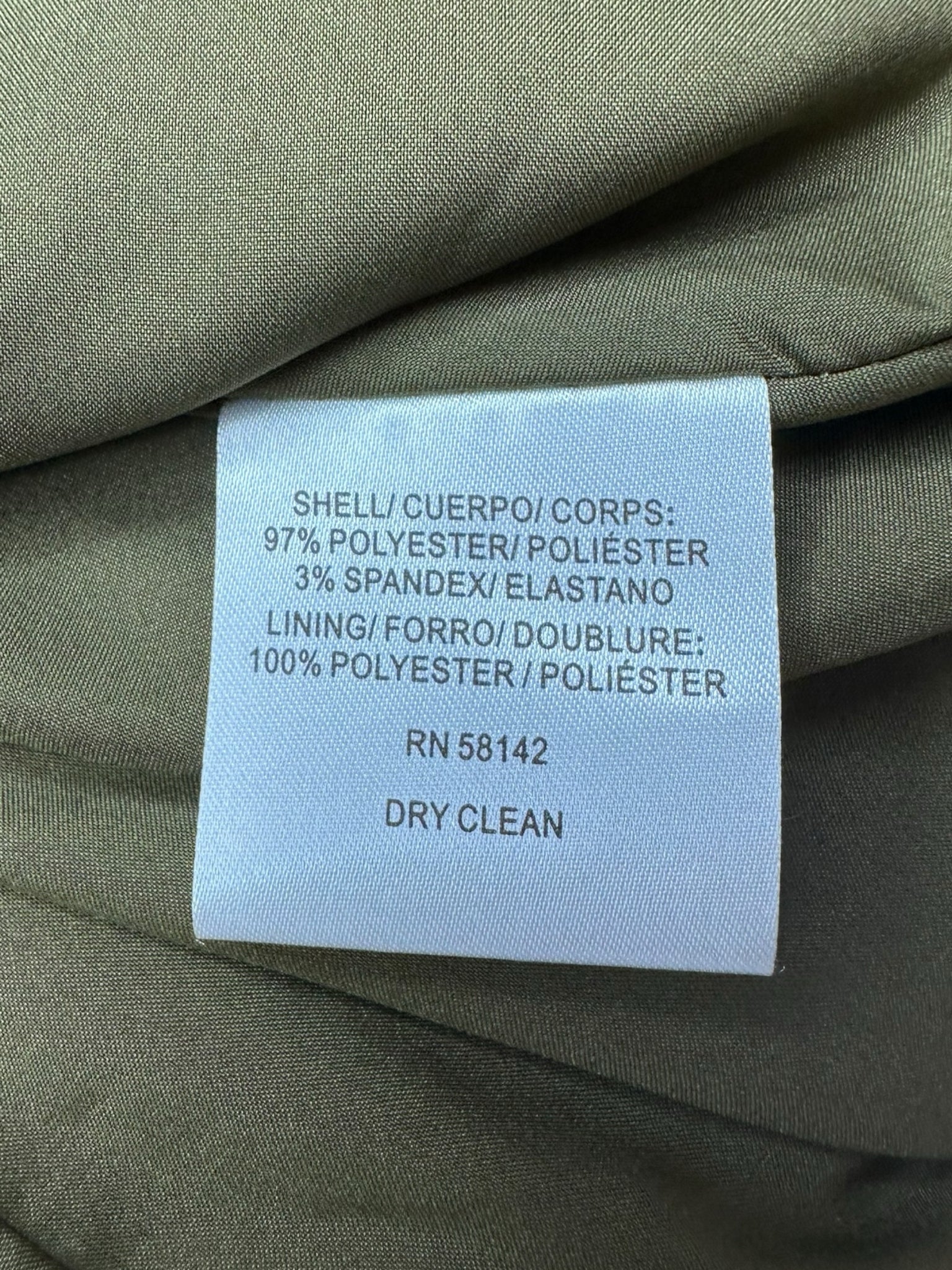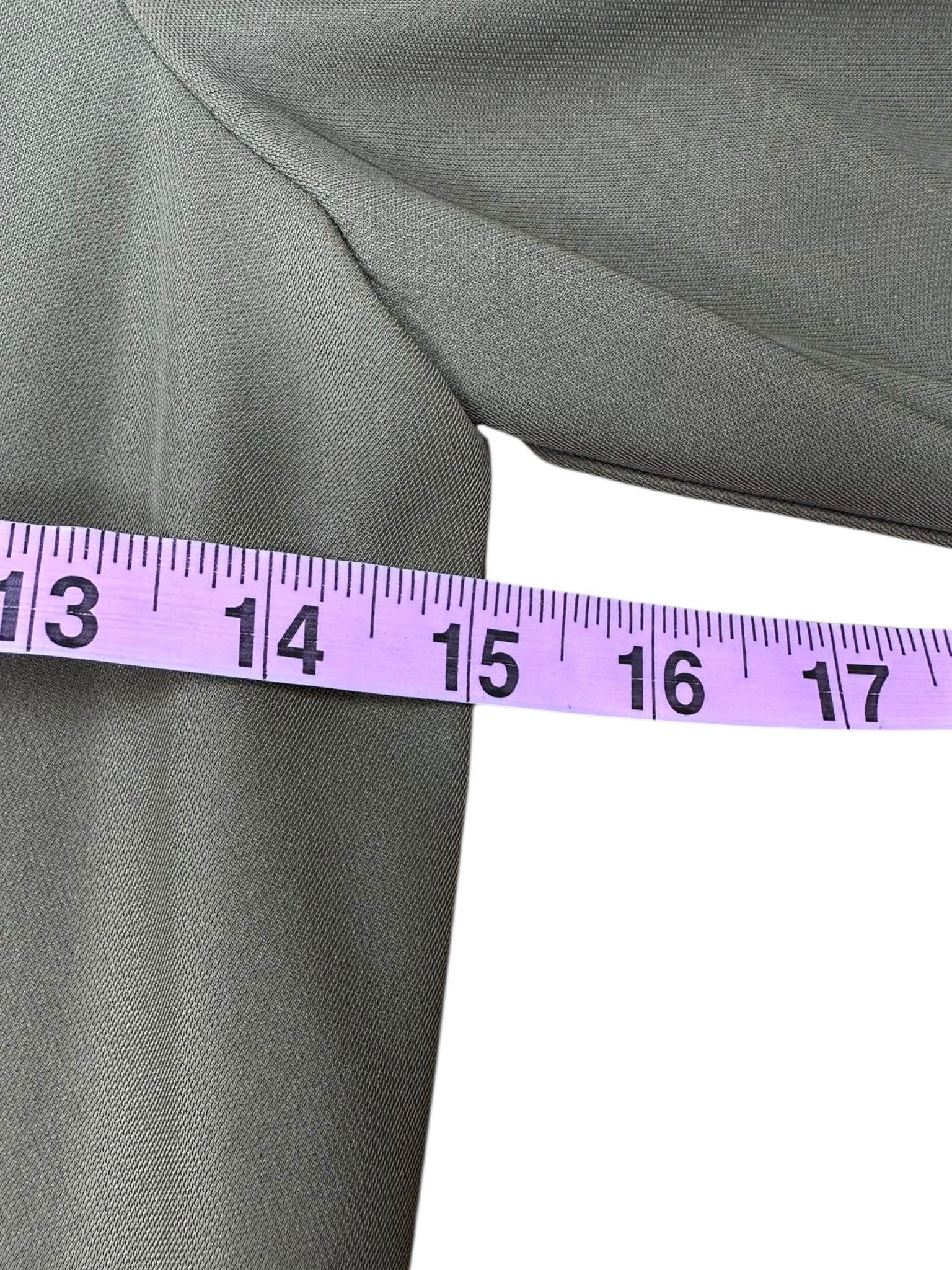 Dark olive retro inspired midi dress with long button cuff sleeves, button front closure, back zipper closure and a belted waist.