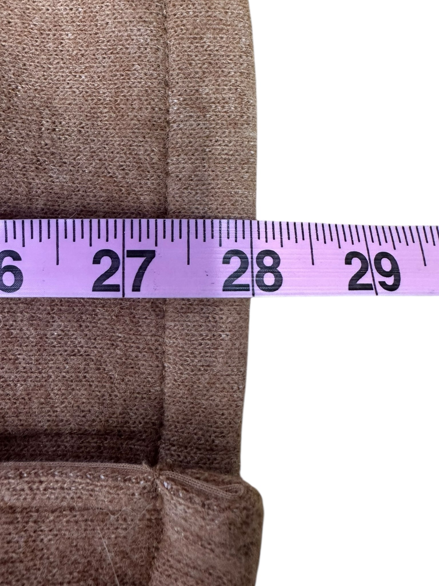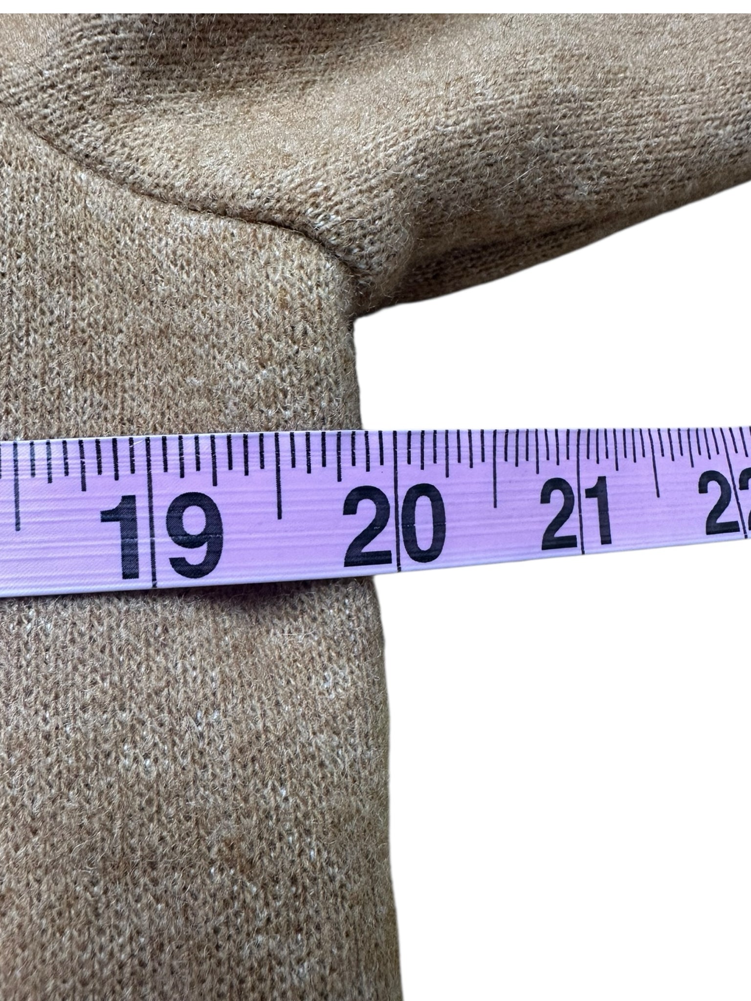 Super warm and cozy tan wool blend knit flannel collared button-down top with long button cuff sleeves, two front pockets and two chest pockets with button closure.