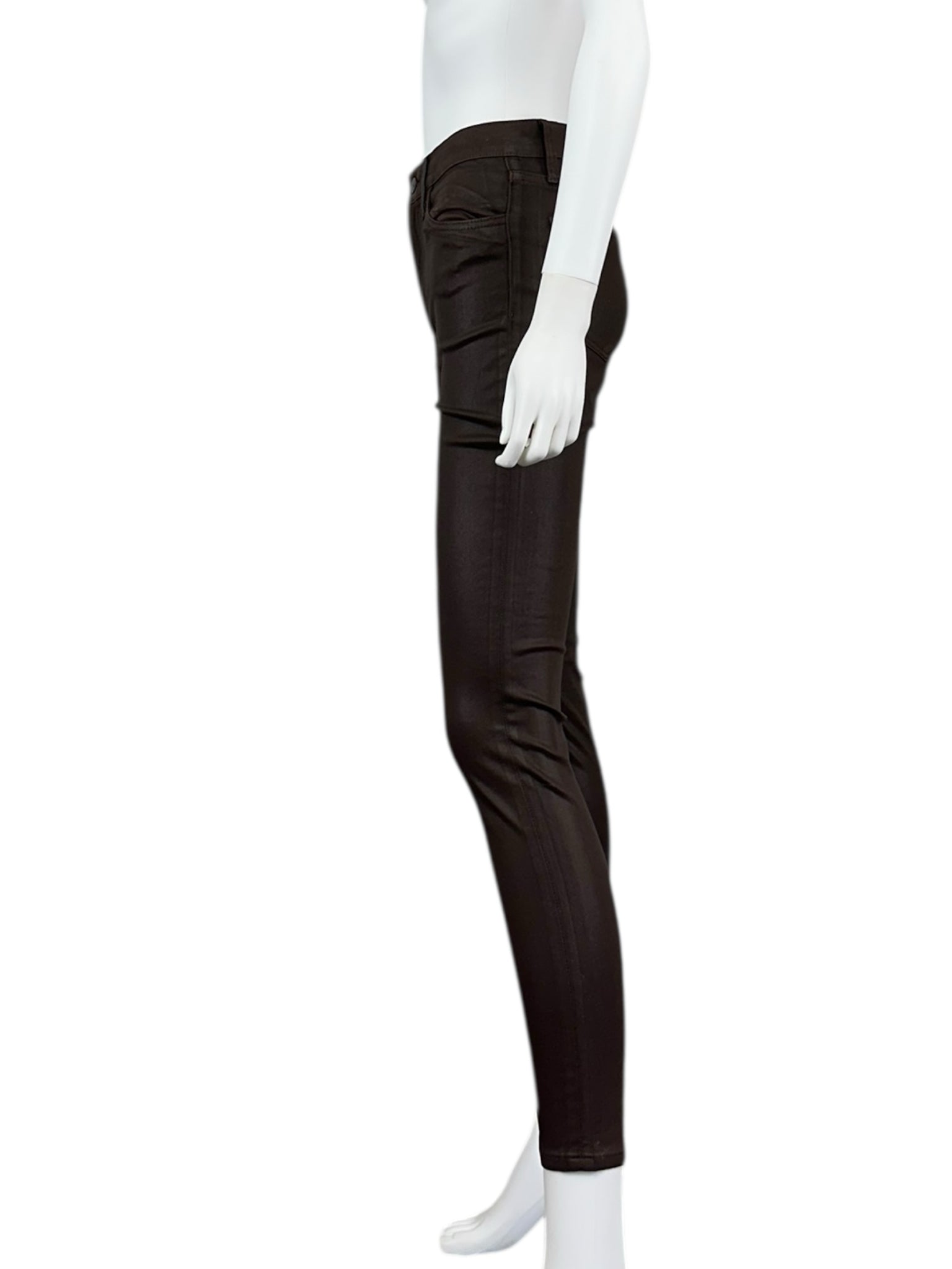 Brown coated denim 'the charlie' Skinny long jeans high rise with front and back pockets.