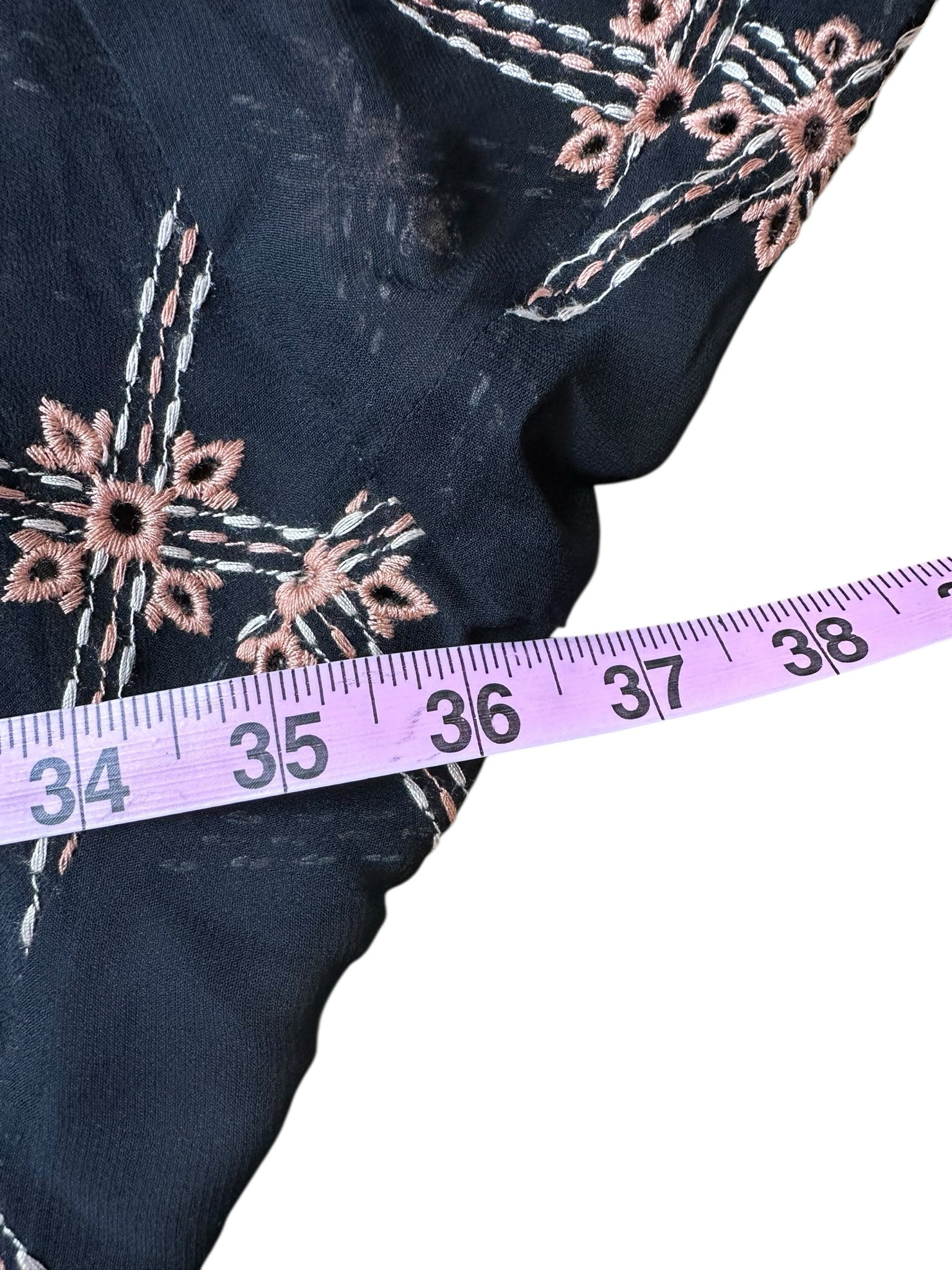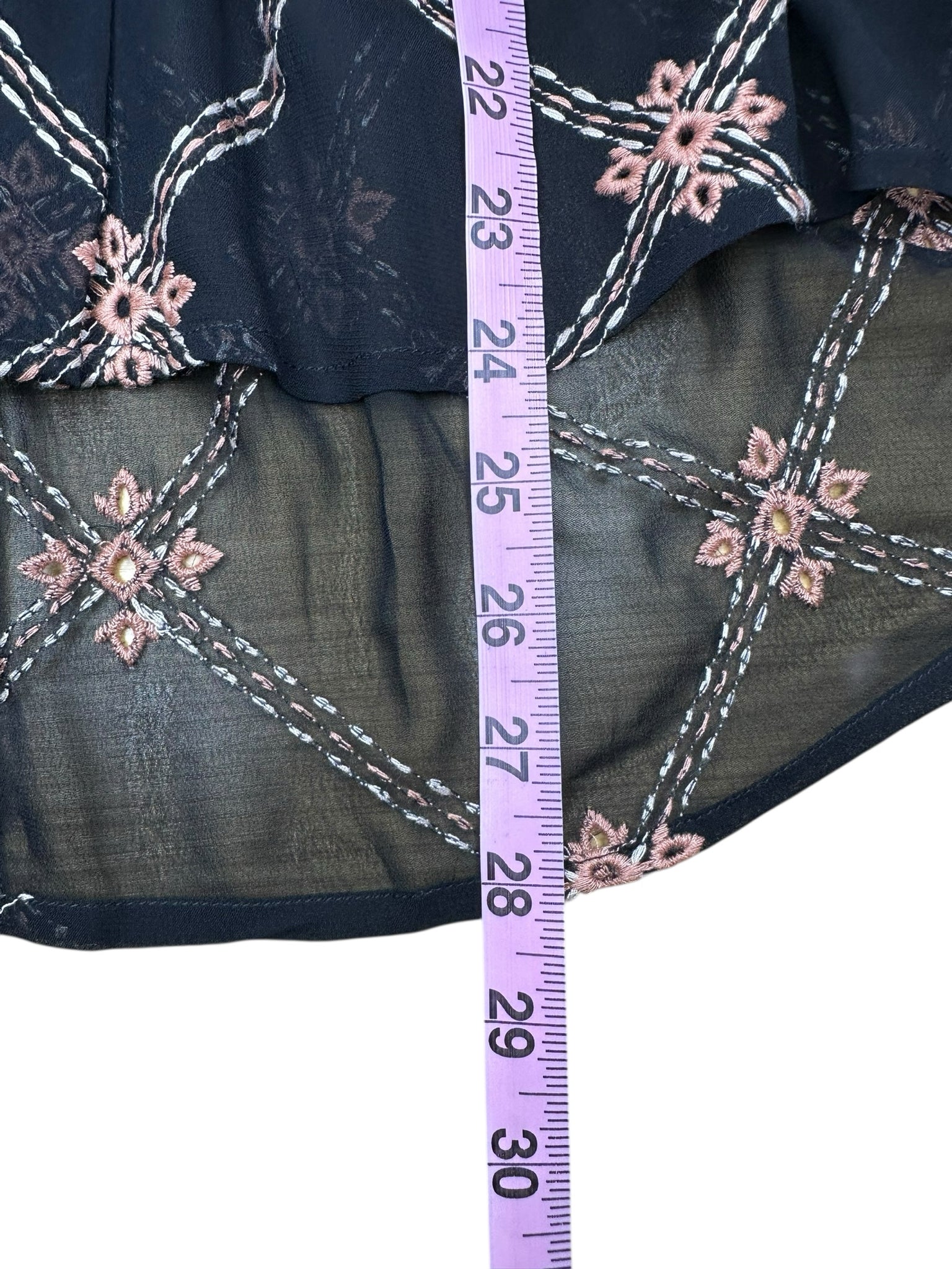 New with tags! Black oversized sheer embroidered print hidden front button closure top with long batwing sleeves.