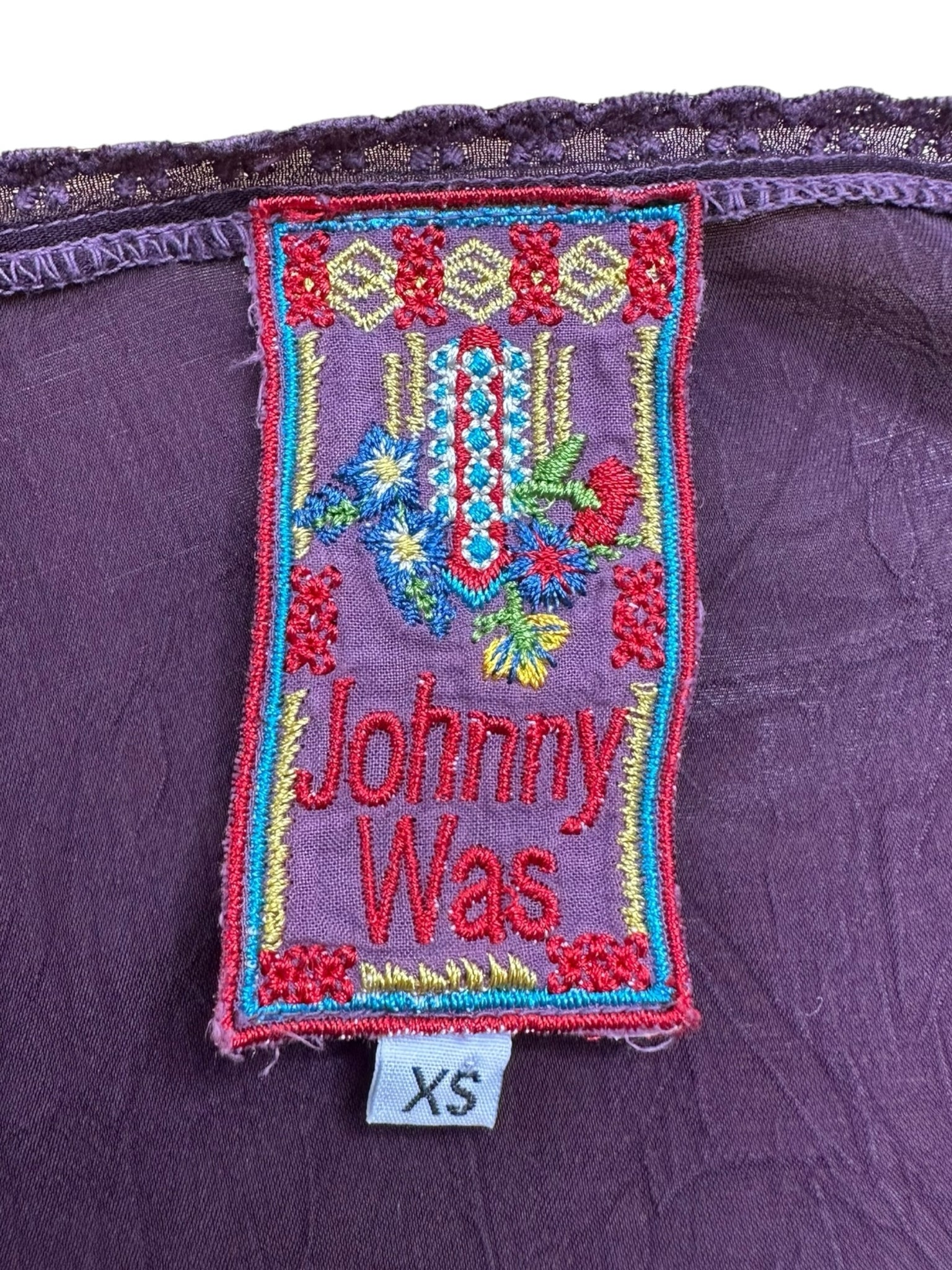 Johnny Was Purple Embroidered Tunic Top Size XS