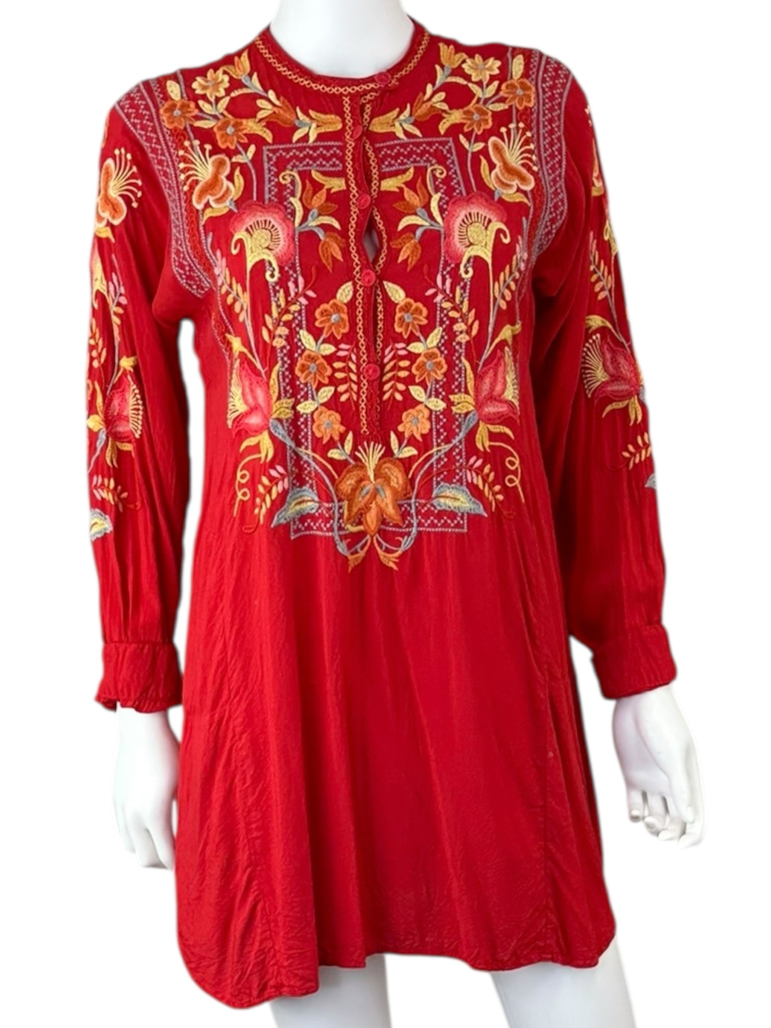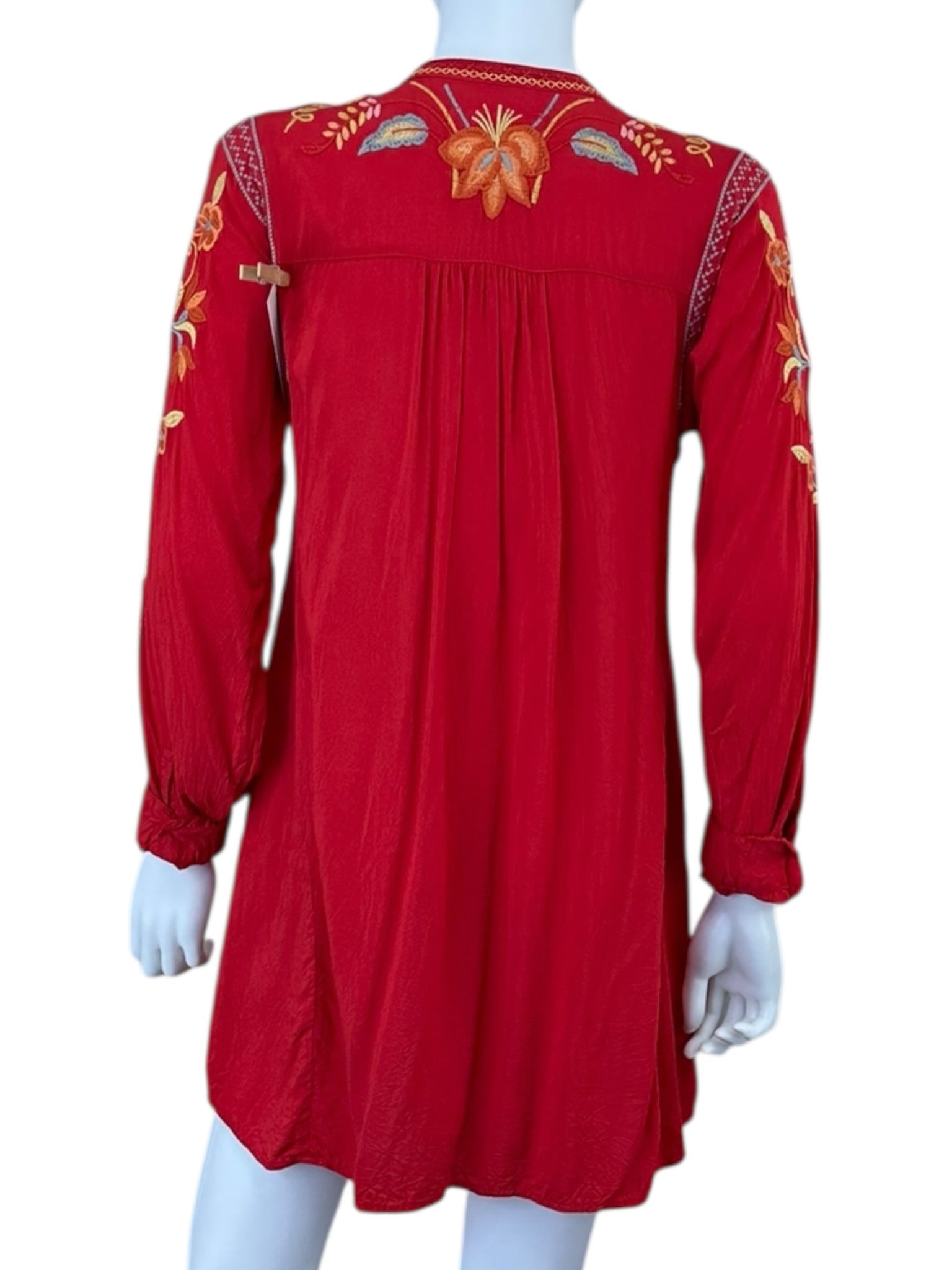 Johnny Was BIYA Red Embroidered Mini Dress Size XS