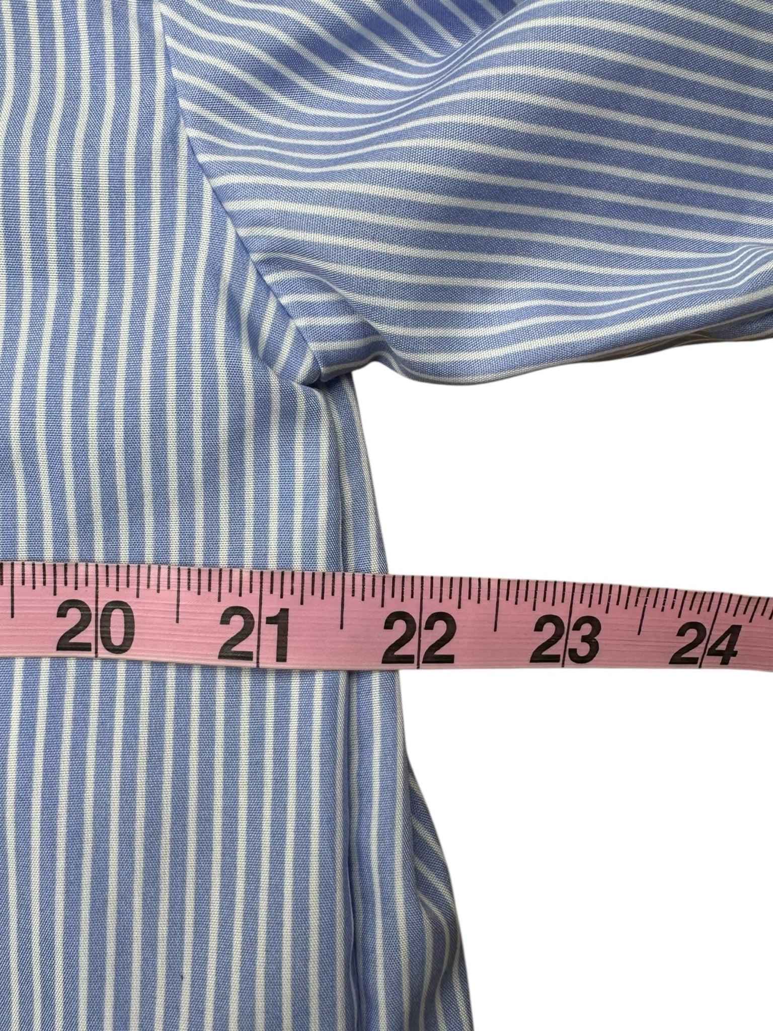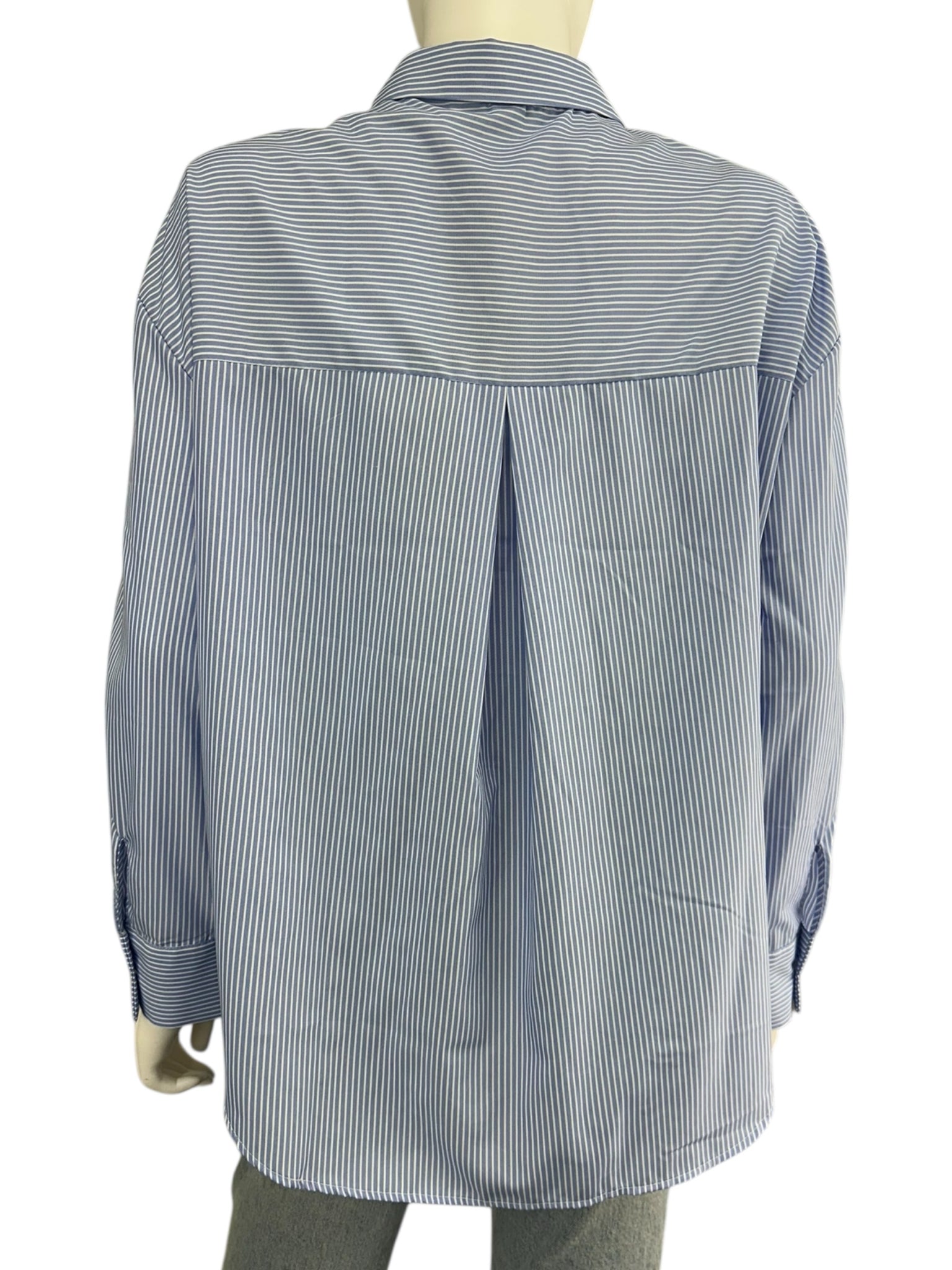 New with tags! Blue and white striped floral print button-down shirt with long button cuff sleeves.