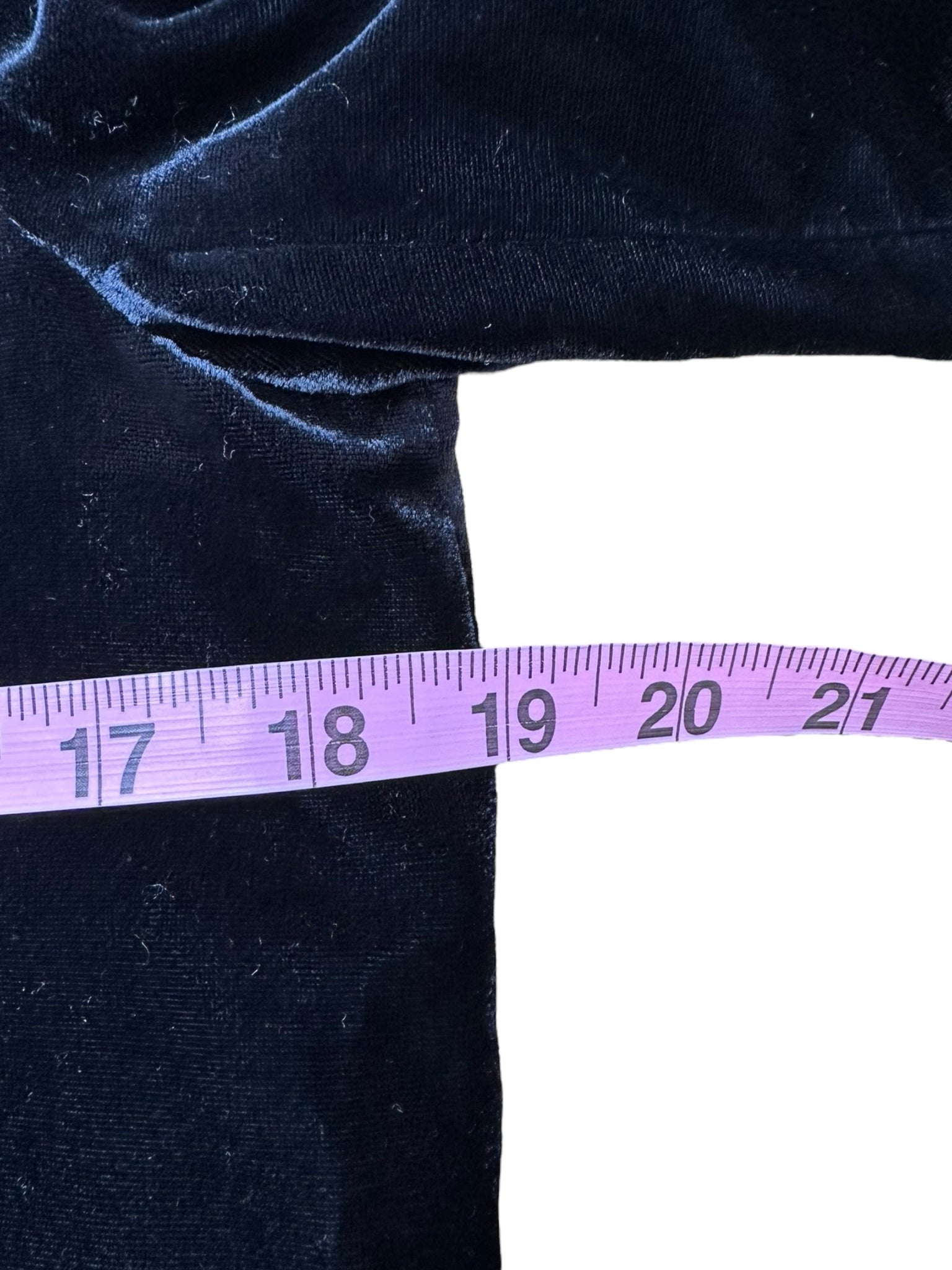 Super soft black velvet jacket with long sleeves, front pockets and a belted waist.