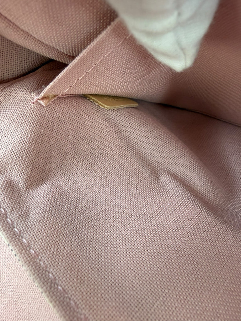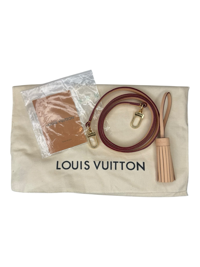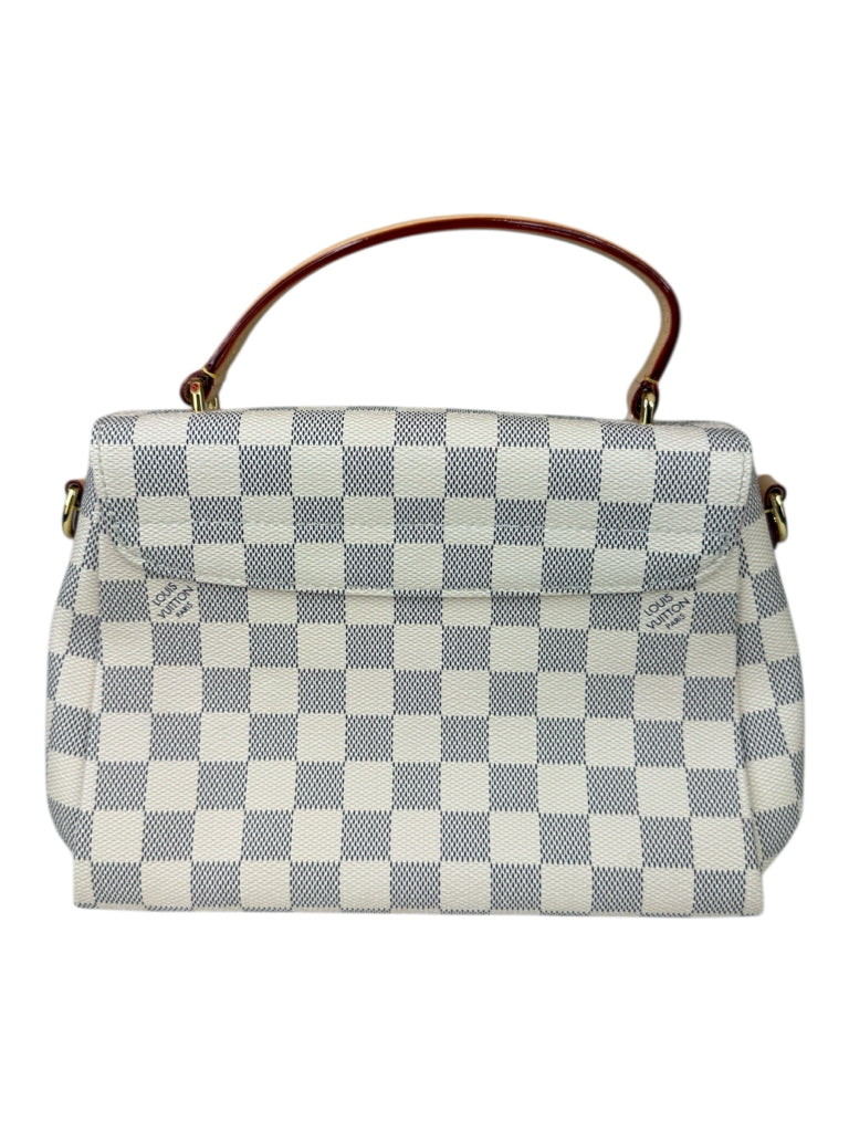 Damier azur Croisette bag on coated canvas. Purse features leather trim and gold tone hardware. Purse comes with an optional crossbody strap, tassel and dustbag. Purse is in perfect condition with the exception of damage to the outside of bag as pictured.