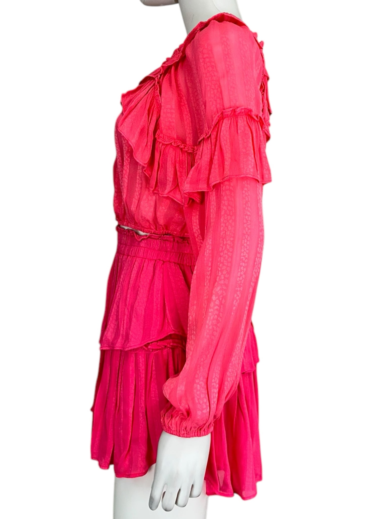NWT hot pink "ruffle popover watermelon ice" long sleeve w button closure. Can buy the matching skirt separately!