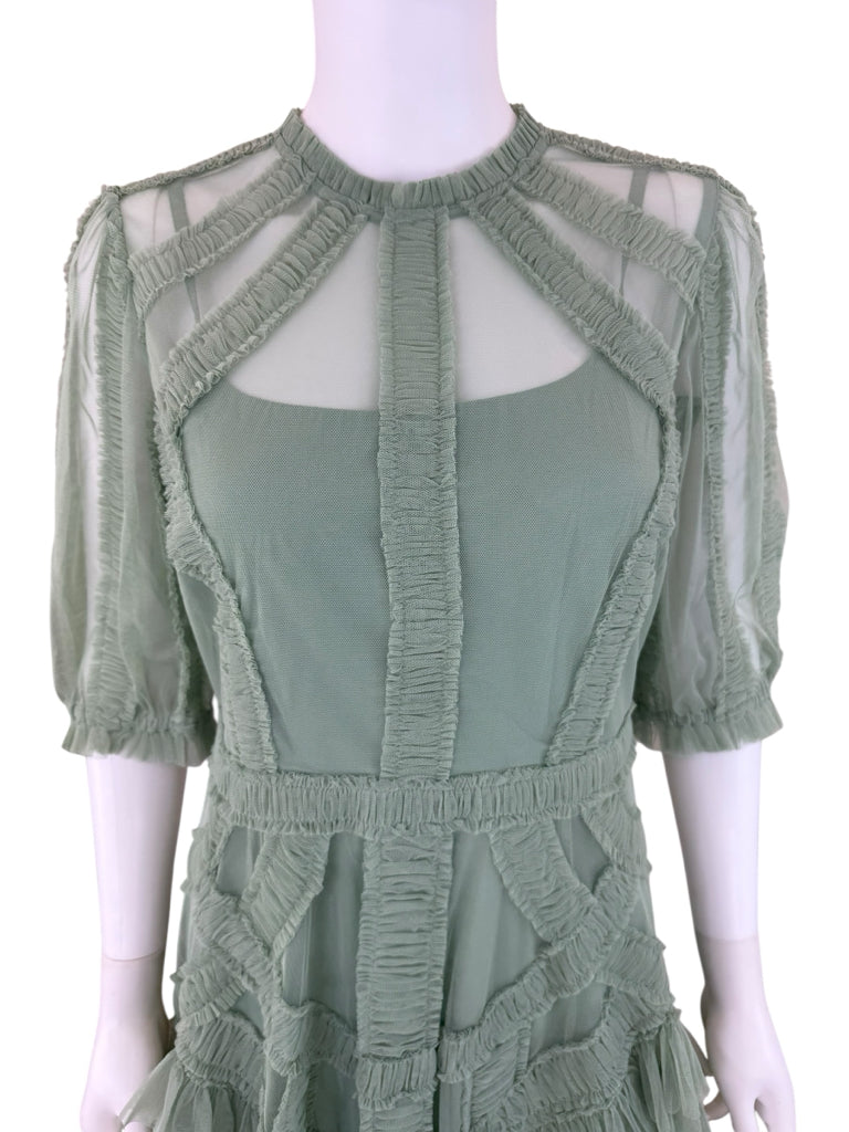 Mac Duggal Green Ruffle Tiered Midi Dress Size 8
