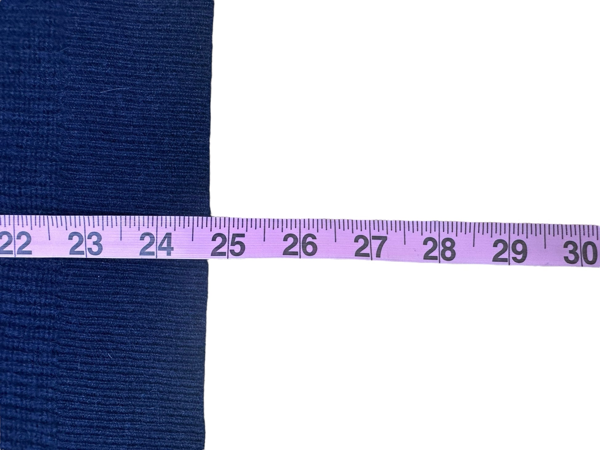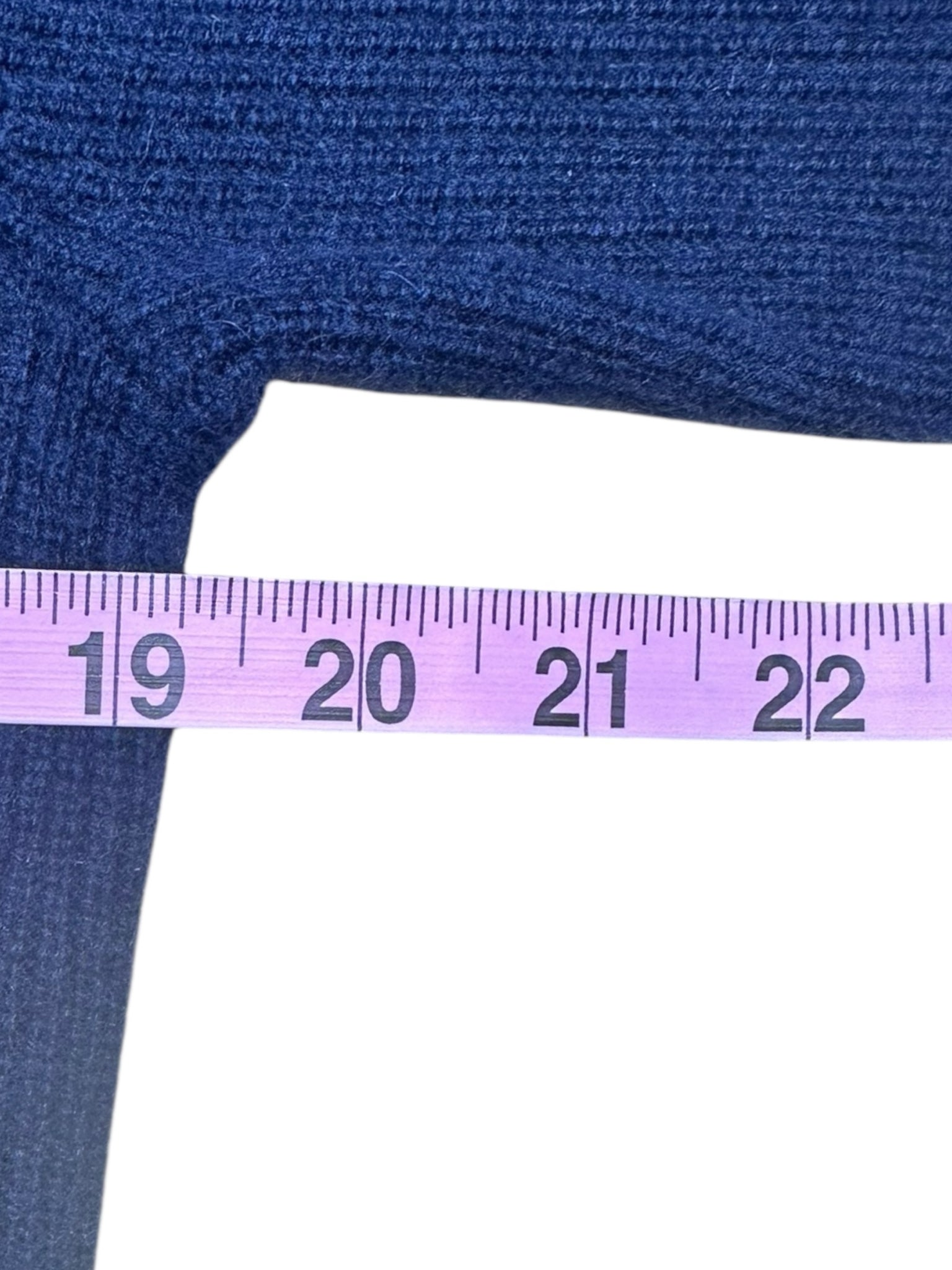 Super soft and comfy navy blue 100% cashmere ribbed sweater with V-neck opening and long cold shoulder style sleeves.