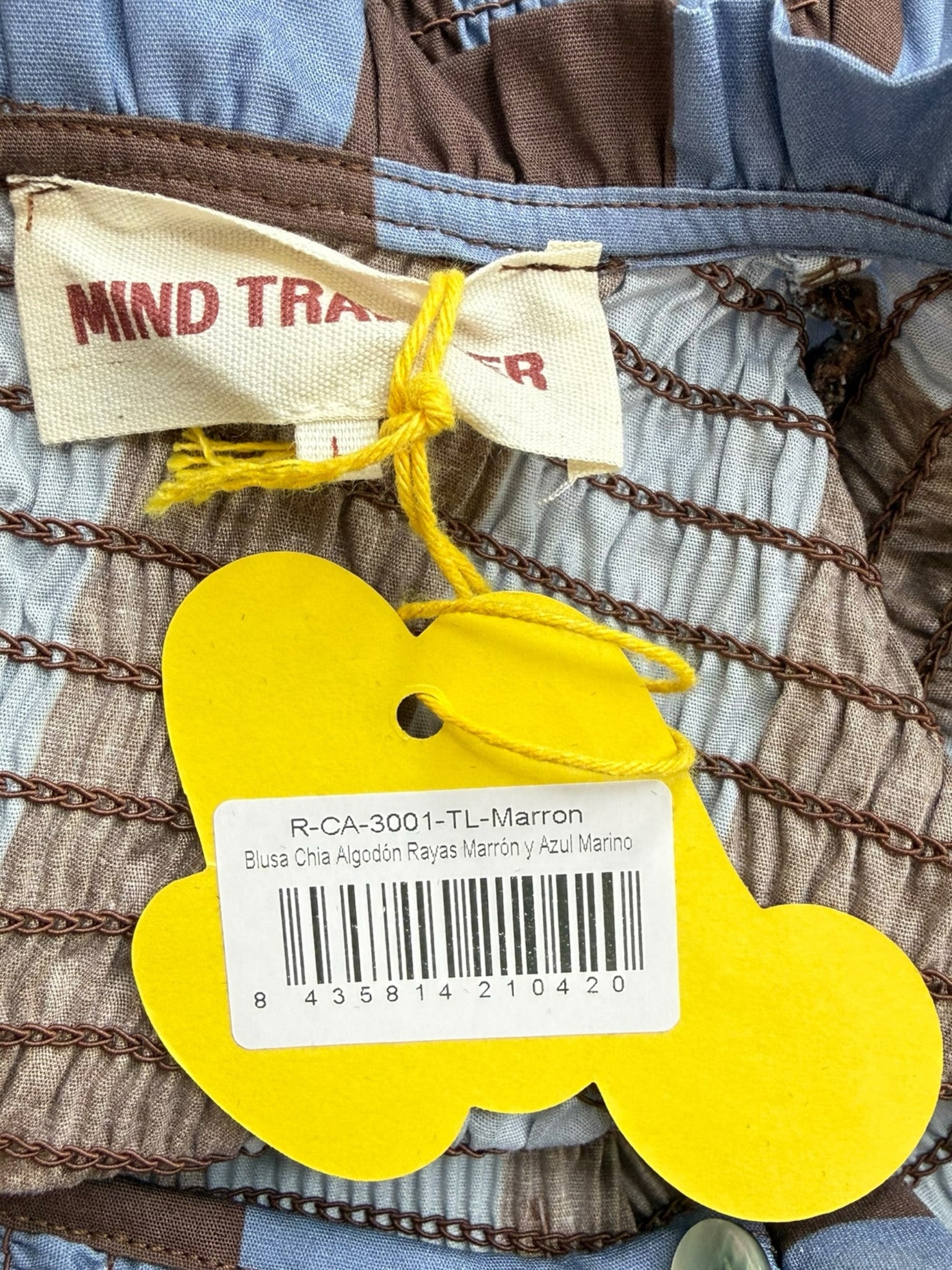 MIND TRAVELER NWT Brown Striped Smocked Chia Blouse Size L