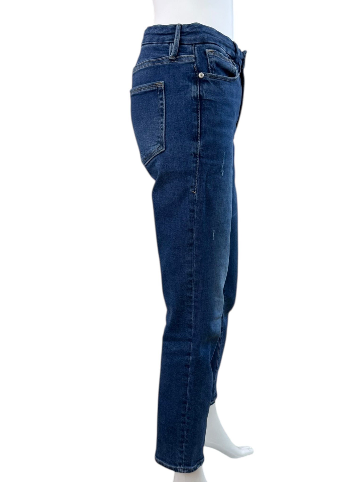 New with tags! Dark blue denim cuffed boyfriend starlet skinny Roxy style jeans with a classic 5 pocket design and a zipper/button fly closure.