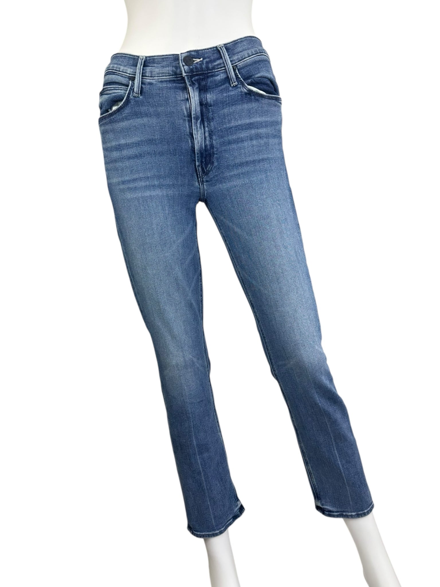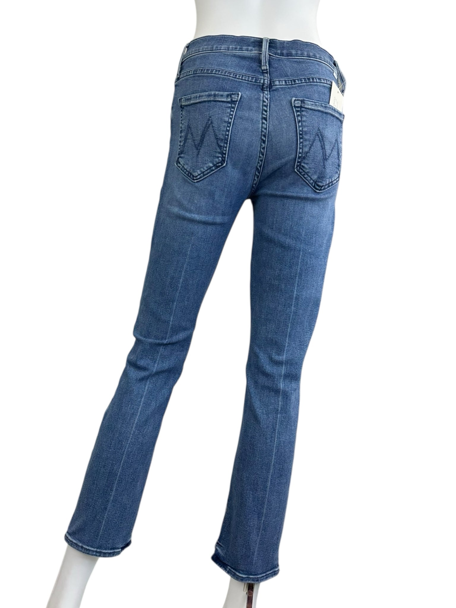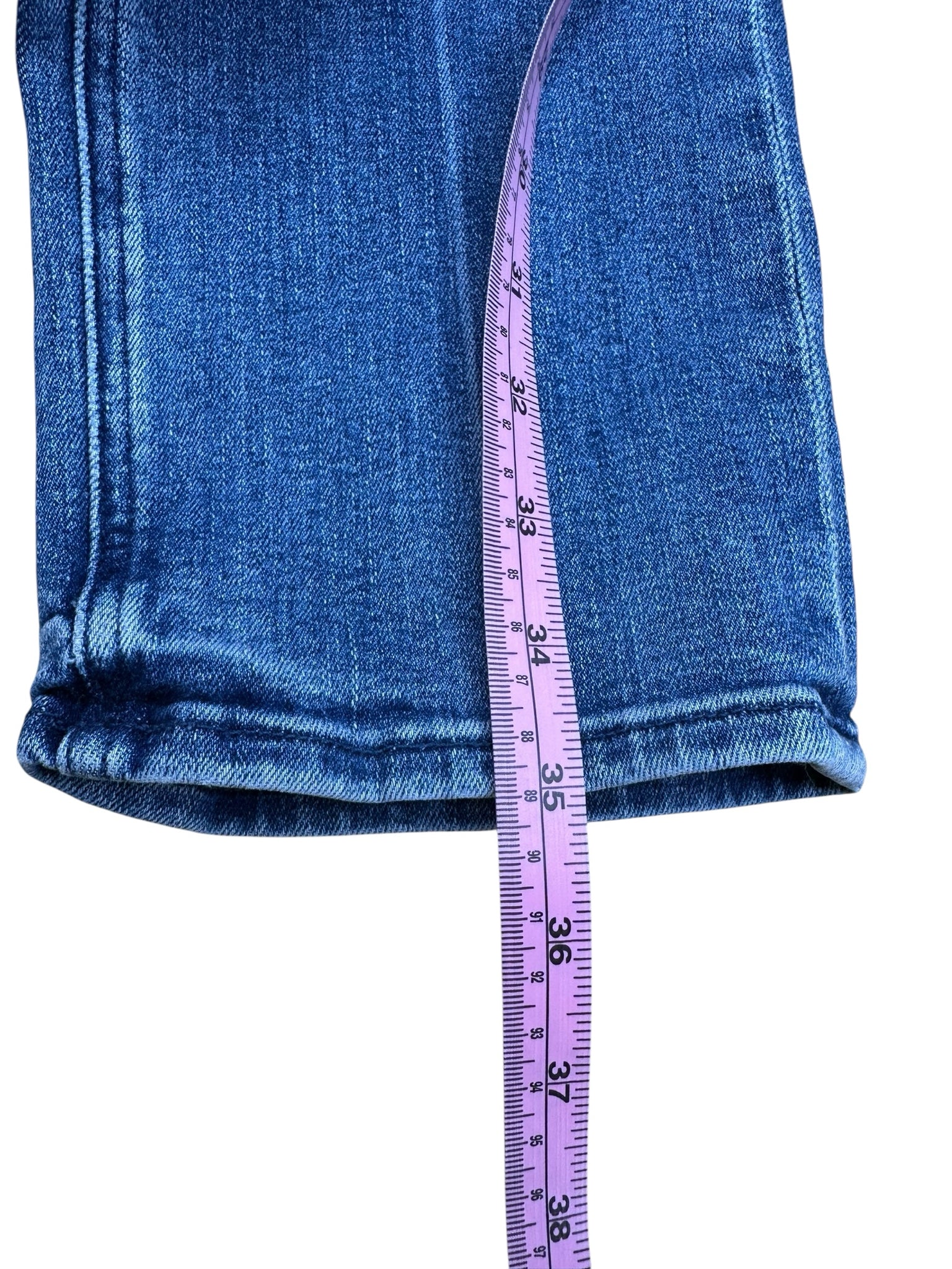 Blue "Mid Rise Dazzler Ankle" jeans with a classic 5 pocket design and zipper/button fly closure. Jeans are made from a super comfy cotton blend stretch denim.