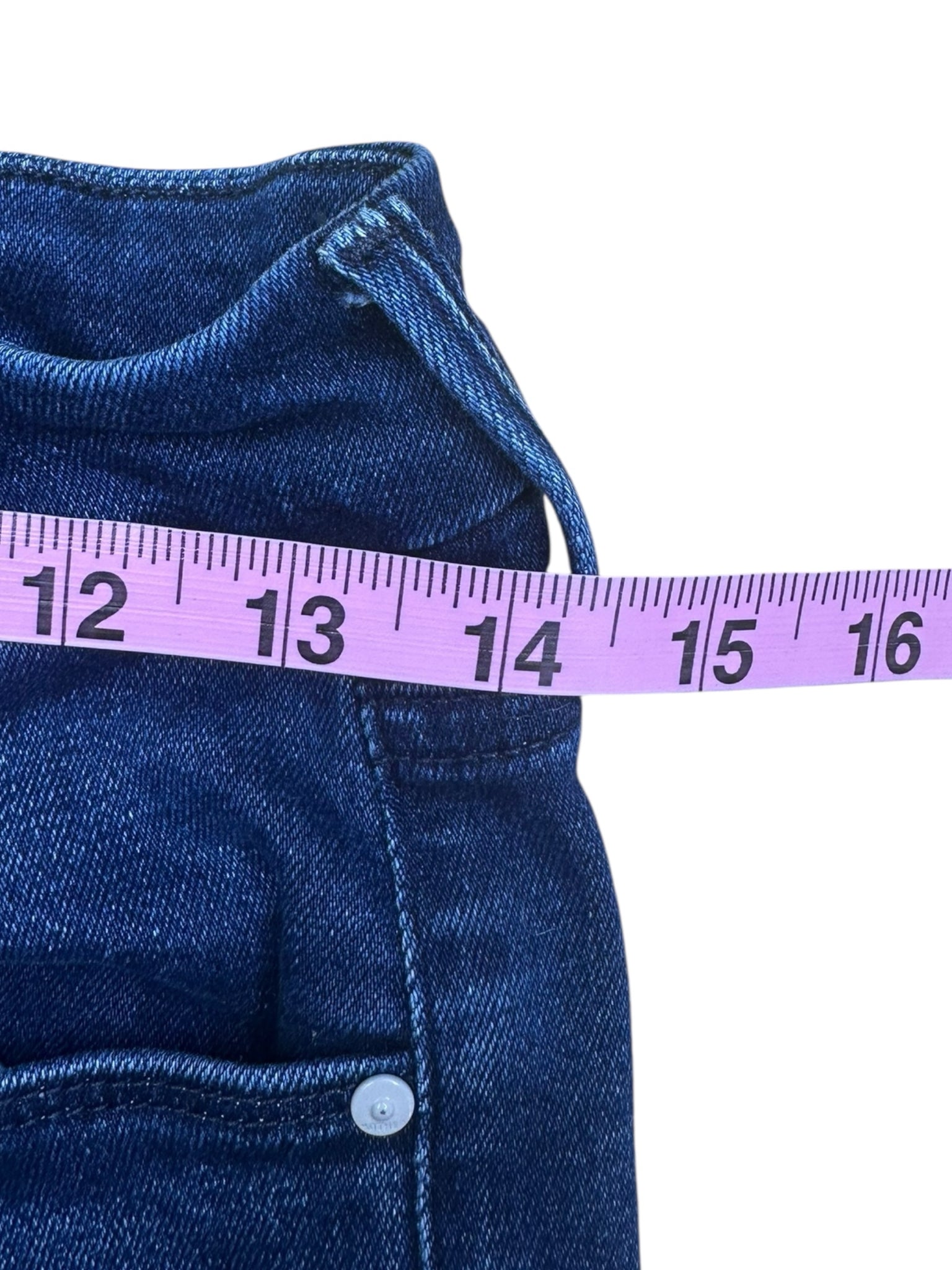 Blue dark wash skinny "the looker skimp" jeans. Jeans are high waisted and feature a classic 5 pocket design with a zipper/button fly closure.