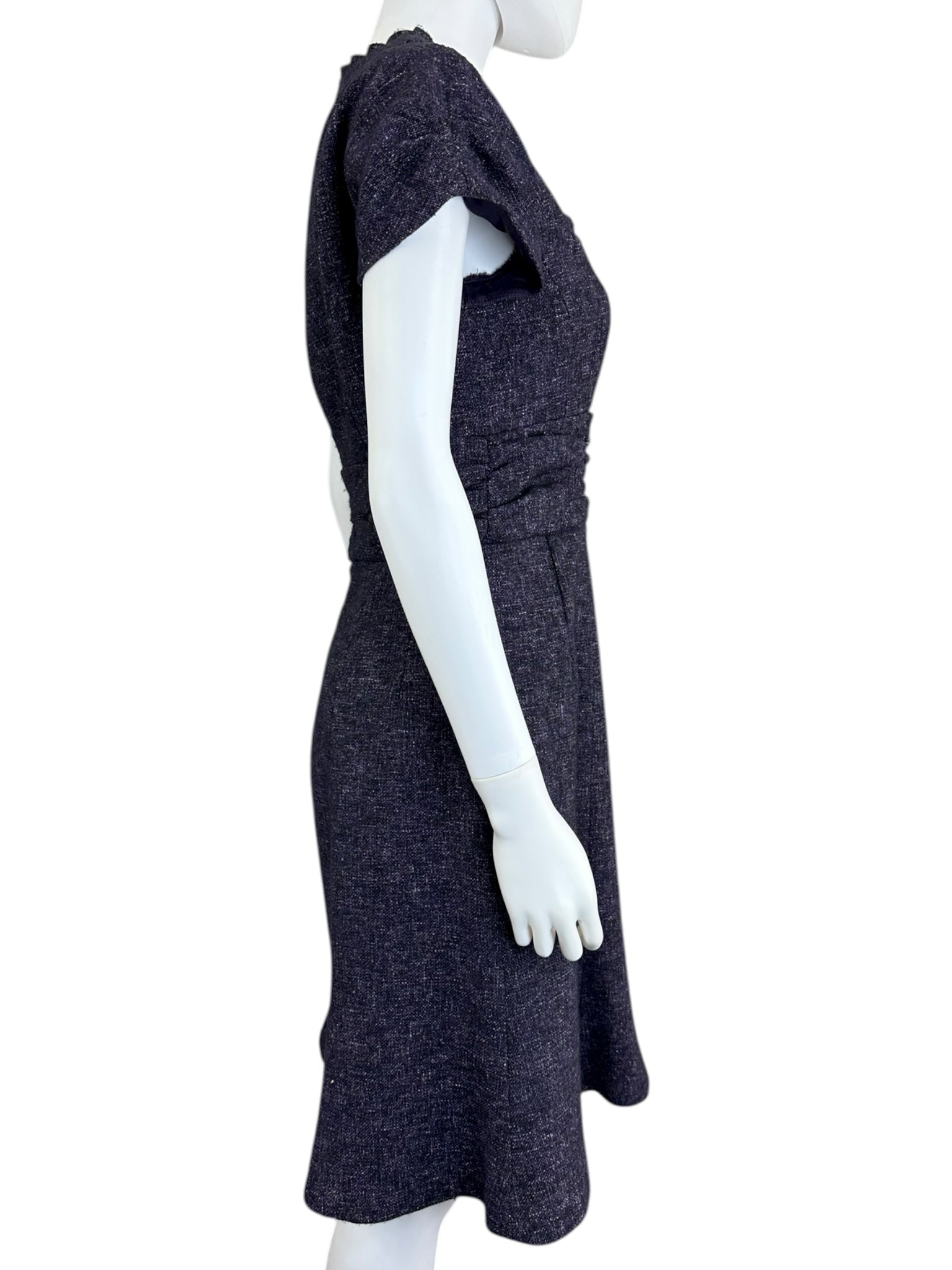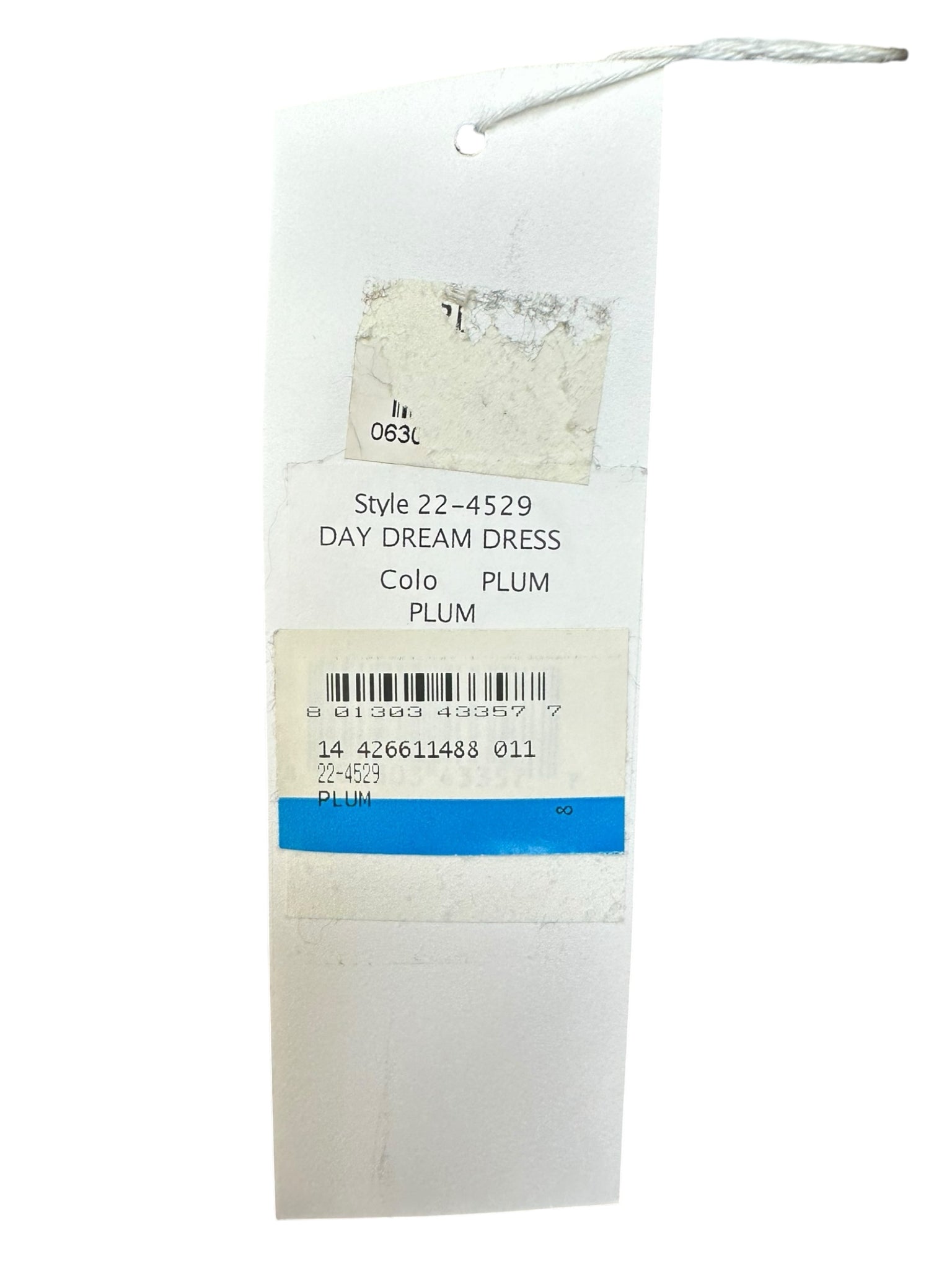 nwt 'day dream dress - plum' deep purple black knee length ss v neck v neck button details