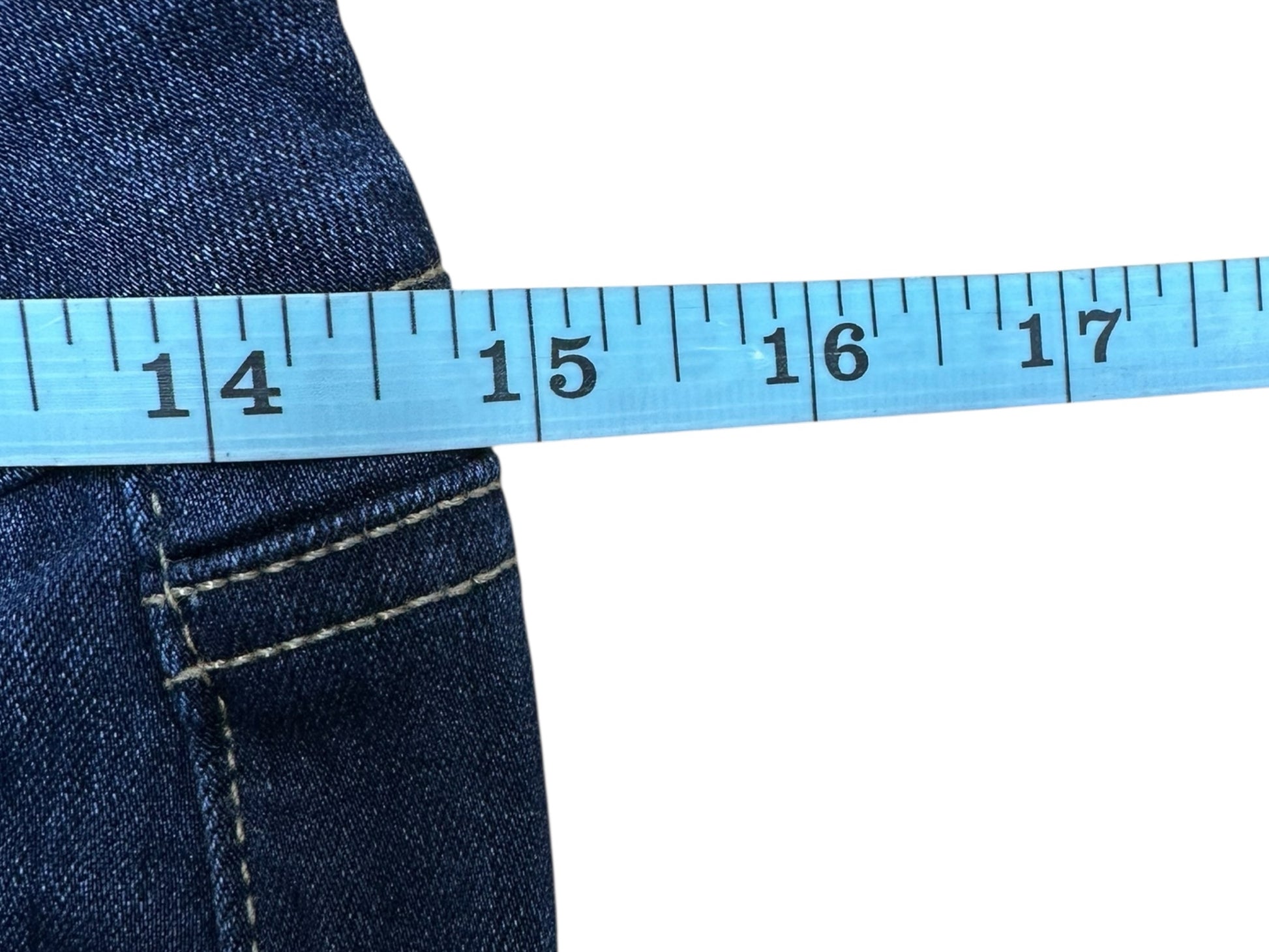 Dark wash midrise "skyline straight" leg jeans with a classic 5 pocket design and front zipper/button closure.