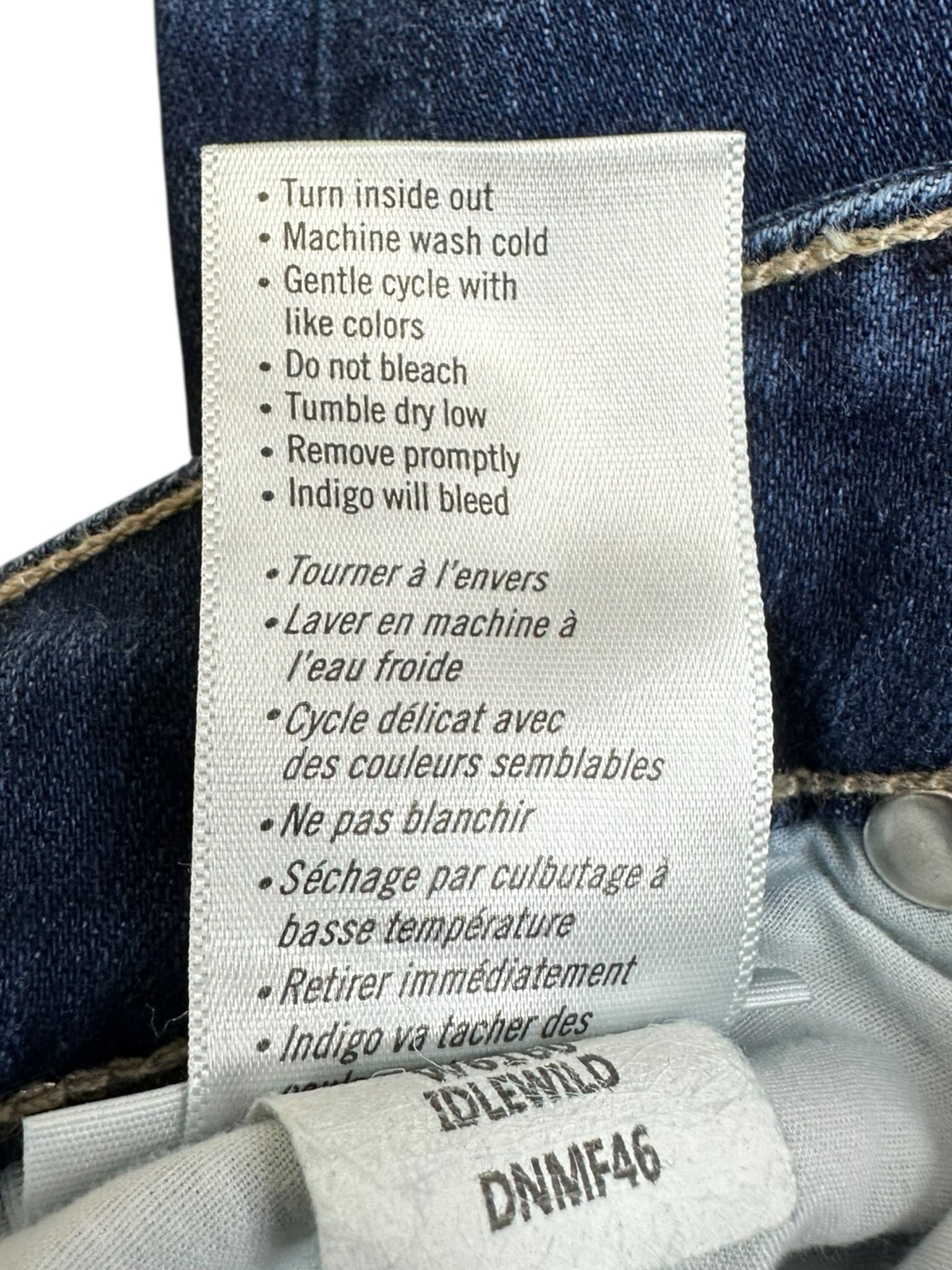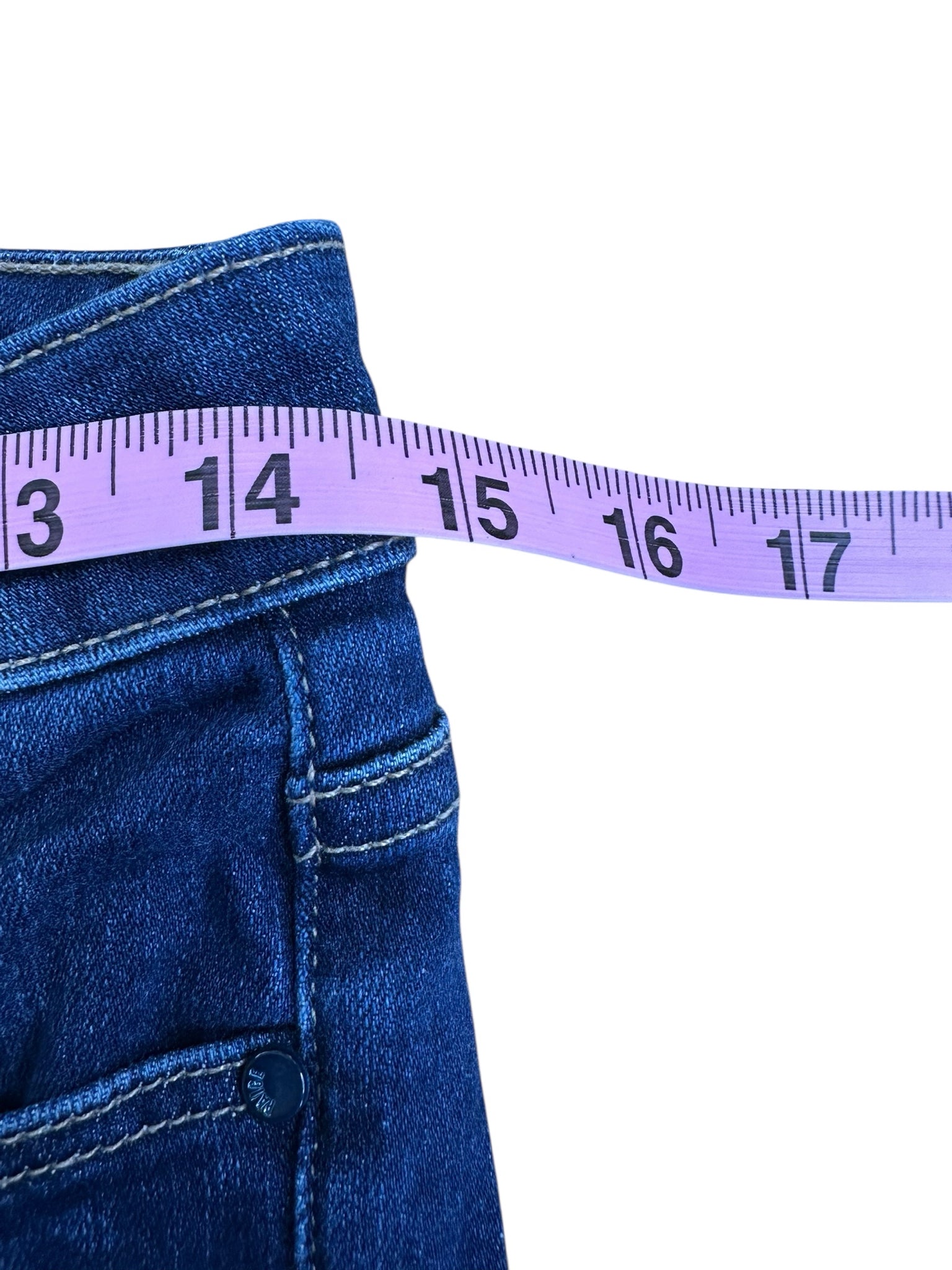 Dark wash ankle length form fitting with five pockets with zip and one button closure "skyline skinny"