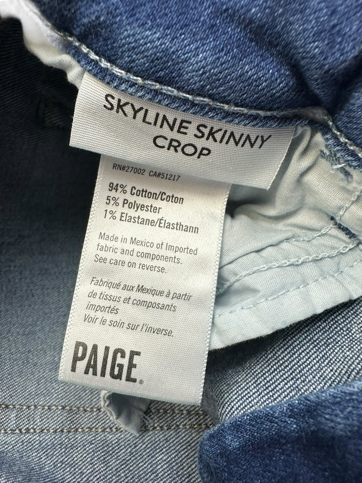 PAIGE Blue Skyline Skinny Crop Jeans Size 27