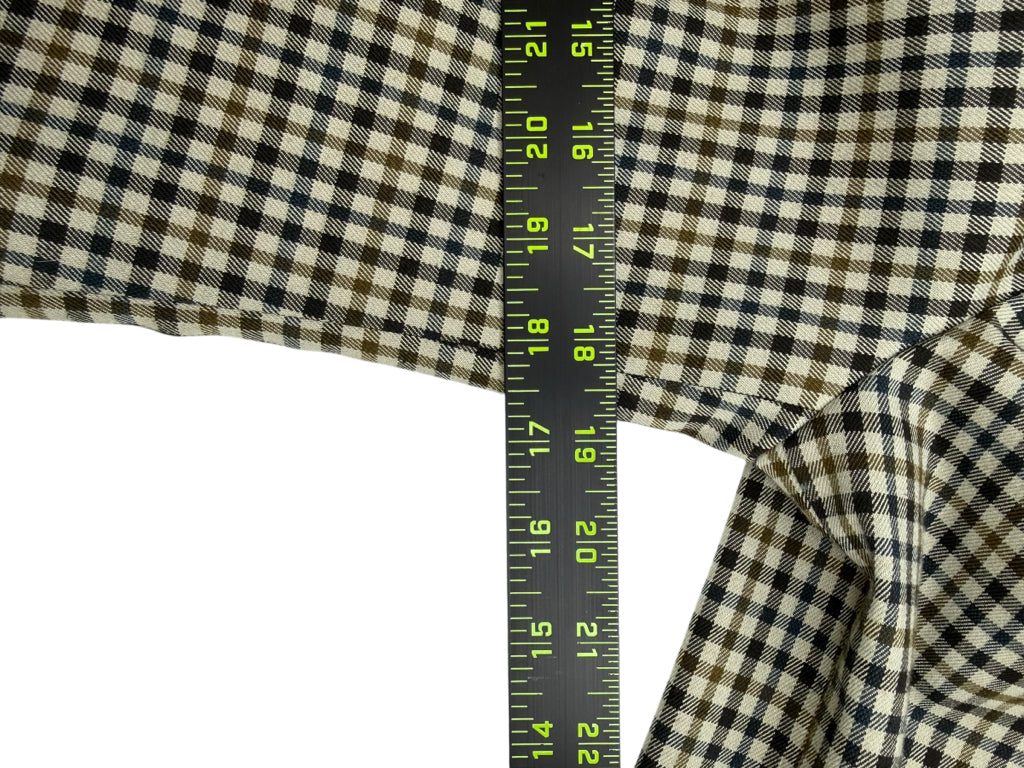 Vintage cream, brown and black plaid blazer jacket with notched collar, long sleeves, front fashion pockets and front button closure.