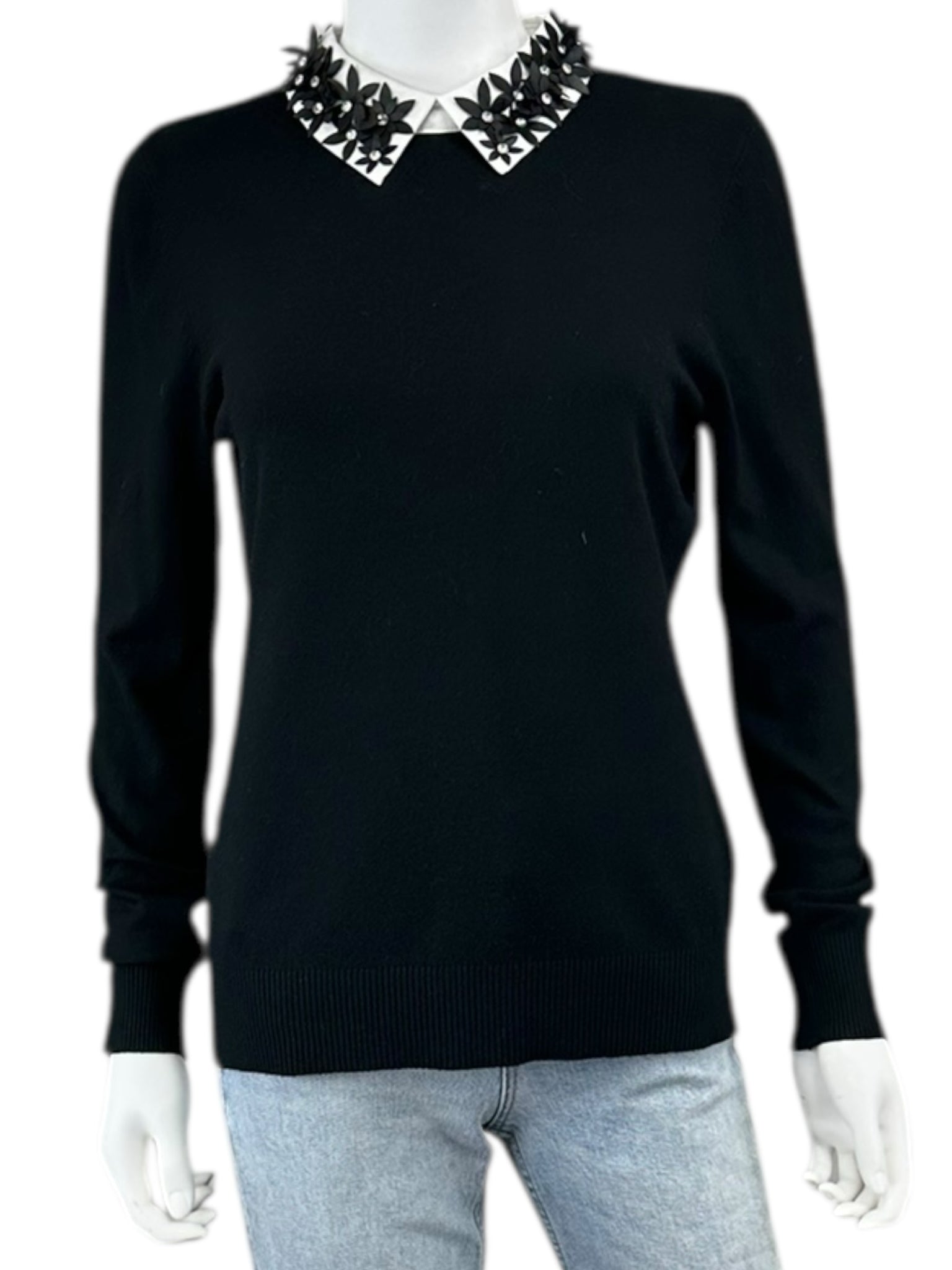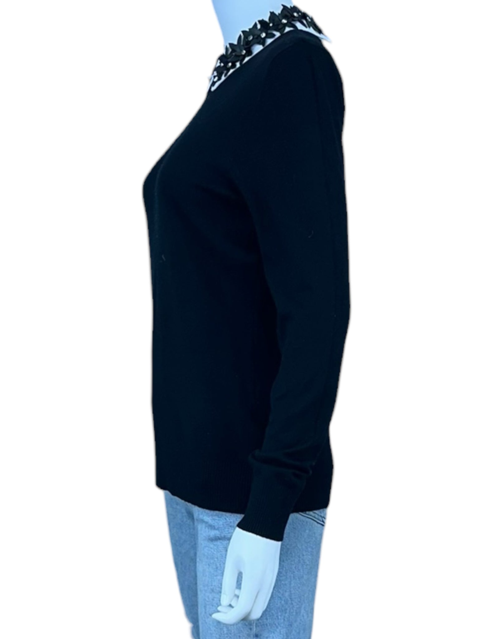 Sioni NWT Black Floral Embellished Sweater Size M